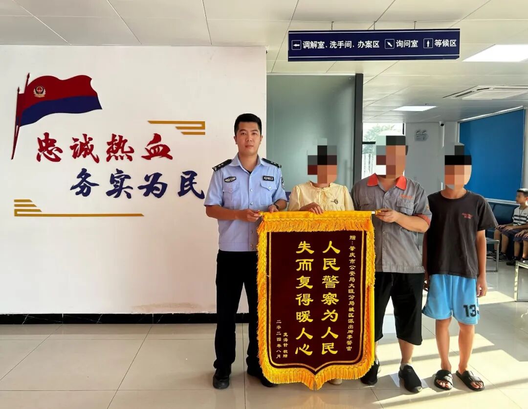 5天后,该男子与其妻子冉女士把一面印着“危难时刻见警心,感谢人民好警察”的锦旗送到黄守健与李瑞华手中,并对大旺公安的及时救助表示深深的谢意。