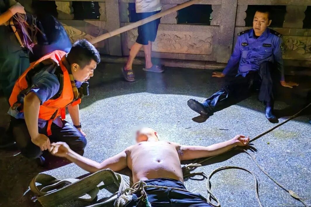 当天值班民警黄守健刚处理完上一个警情,还没来得及歇息片刻,又接到一名醉酒男子轻生的报案,他带领辅警李瑞华携带救援装备火速赶往现场。