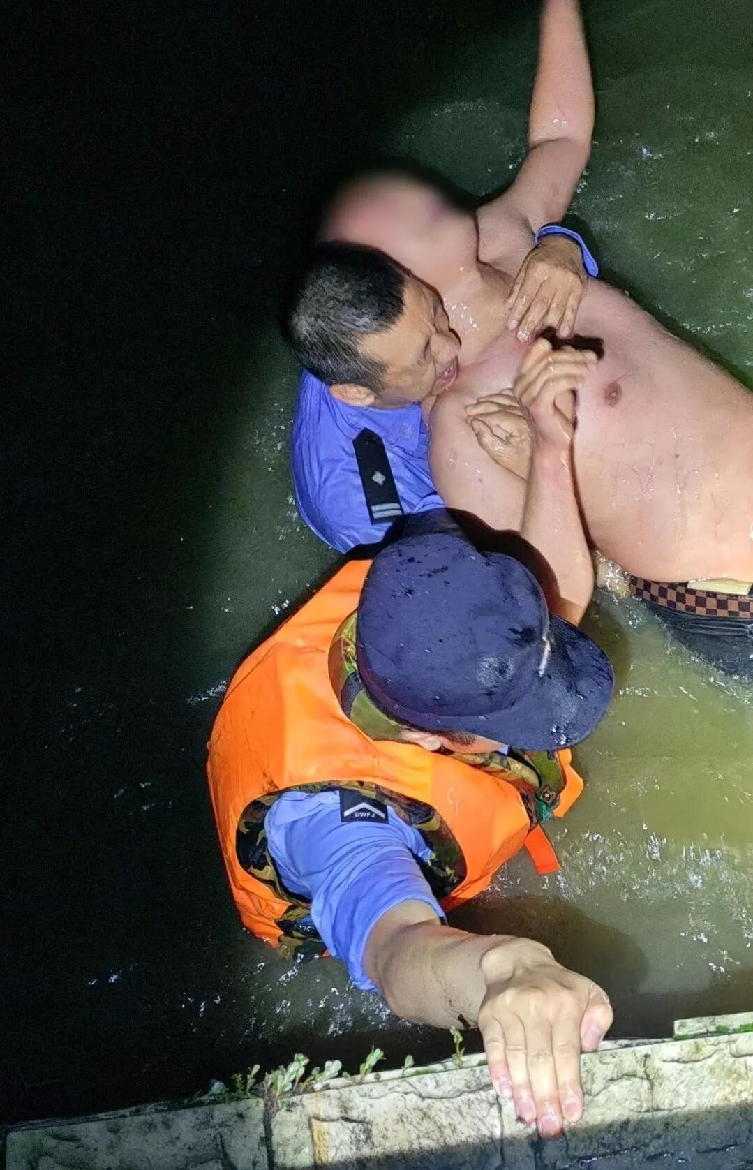 到达现场后,听到轻生男子的妻子急促的呼唤,千钧一发之际,顾不上湖水的冰冷,他们立即跳进湖中展开营救。由于轻生男子跳湖前醉酒,又与妻子进行了一番争吵,尽管民警奋力施救,但男子仍挣扎着身体拒绝救援。