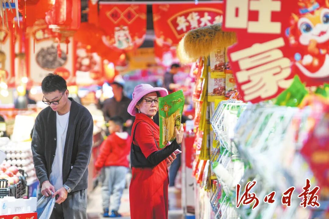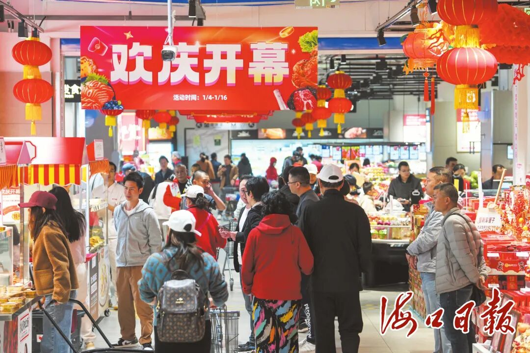 1月12日,在旺豪超市(明珠店),市民游客正在货架前挑选商品。海口市融媒体中心记者 杨鹤 摄