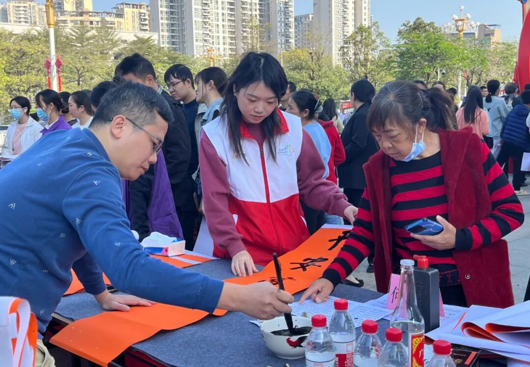 有序排队领取春联,挑选心仪的春联内容,书法家现场挥毫。