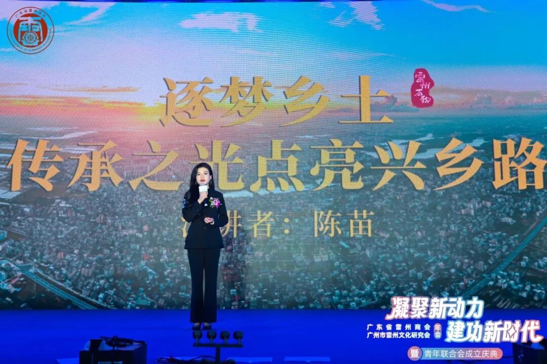 陈苗在广东省雷州商会、广州市雷州文化研究会年会上发言。