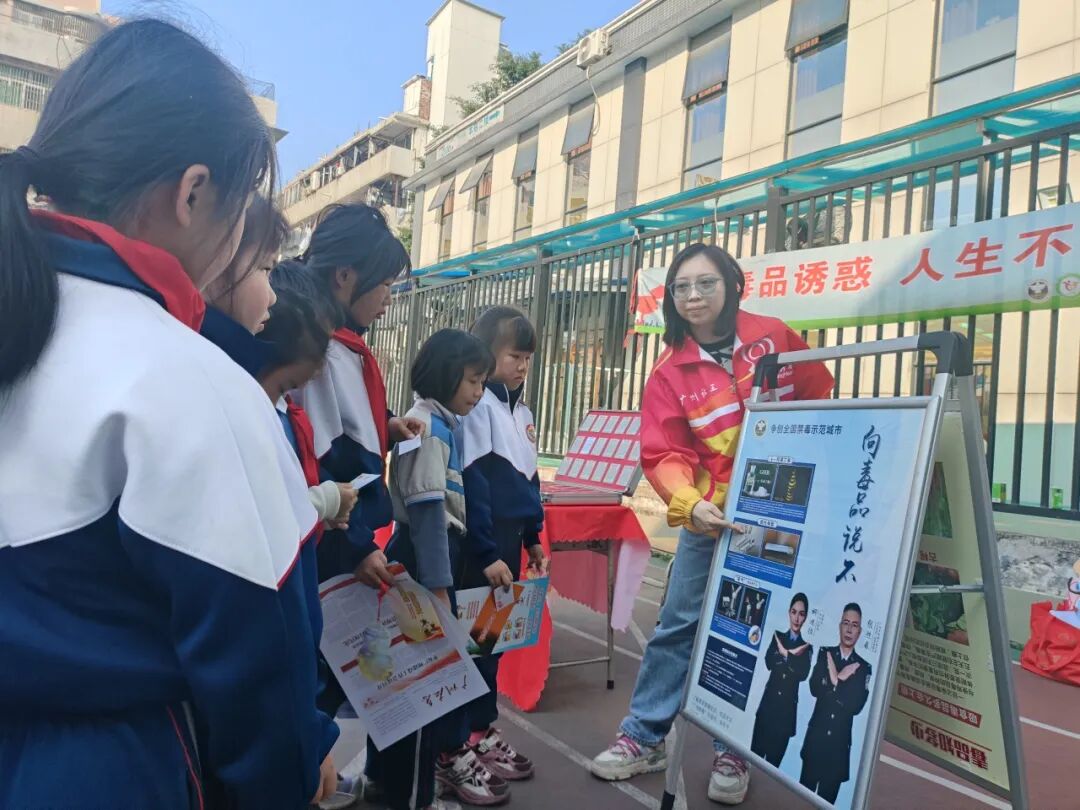 除美育活动之外,游园会还设置了禁毒、消防安全、垃圾分类、交通安全、爱牙护牙五个科普游戏摊位,吸引了许多的学生参与。