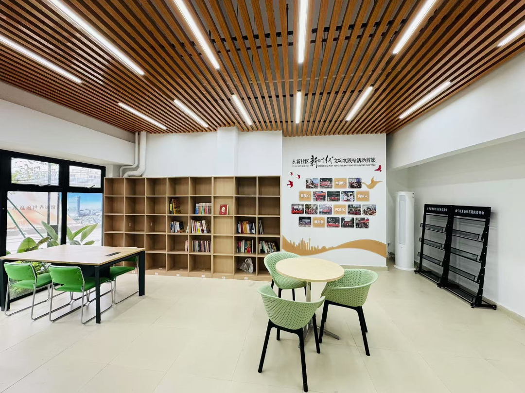 同时,社区阅览室还设有永新社区新时代文明实践站活动剪影展示墙,向前来阅读的居民展示理论宣讲、家庭教育、科普宣传等丰富多彩的活动瞬间,进一步加强文明实践活动的覆盖面和知晓率,动员更多居民参与其中,发动群众力量与社区共同打造“家门口”的文明实践精神家园。