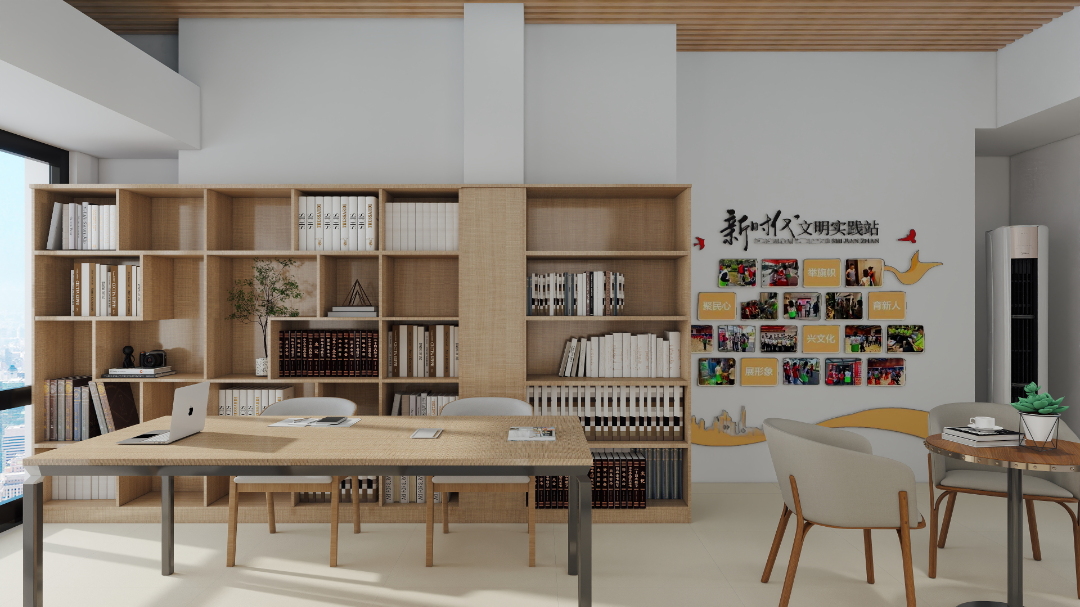 该项目以打造高品质阅读空间为标准,对配套场地进行全面升级改造。阅读空间采用大片的暖色调,以原木色的书柜和桌椅营造出明亮又轻松的氛围,现场配套设置阅读书桌、休息座椅、空调等设施,充分满足前来阅读的居民临时休息的需求,还有效满足居民群众碎片化、分散化阅读的实际需求,扎实推动“微实事”在社区落地生根。
