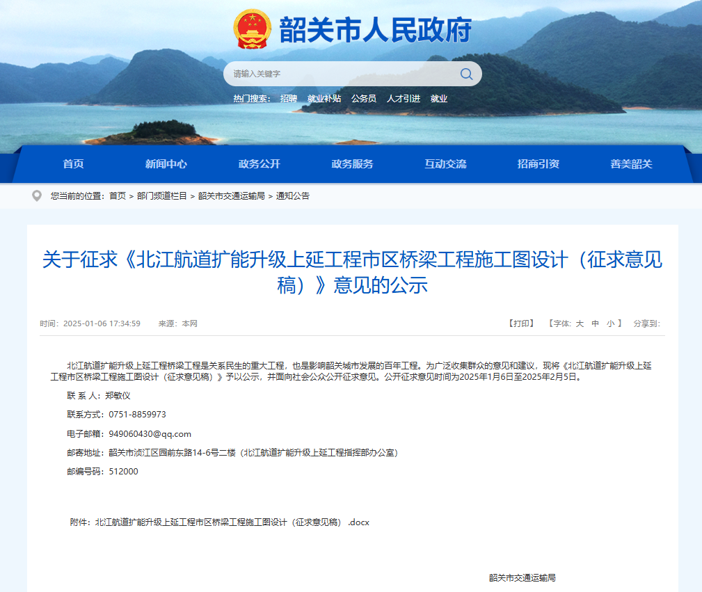 邮寄地址:韶关市浈江区园前东路14-6号二楼(北江航道扩能升级上延工程指挥部办公室)