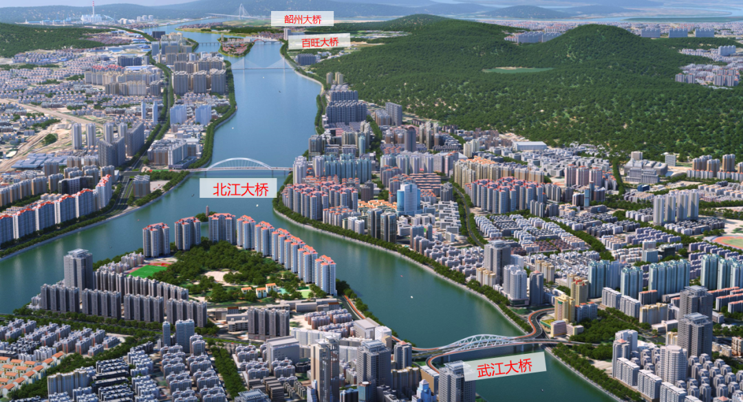 本项目涉及8座桥梁拆除,新建7座桥梁。其中市区新建3座,包括北江大桥、武江大桥(与西河大桥合建)、十里亭大桥。桥梁的拆除重建有利于航道升级完善综合交通运输体系,改善韶关市区景观城市风貌,提升现状交通服务水平,方便市民出行。本次公示仅为市区北江大桥、武江大桥、十里亭大桥三座新建桥梁设计情况。