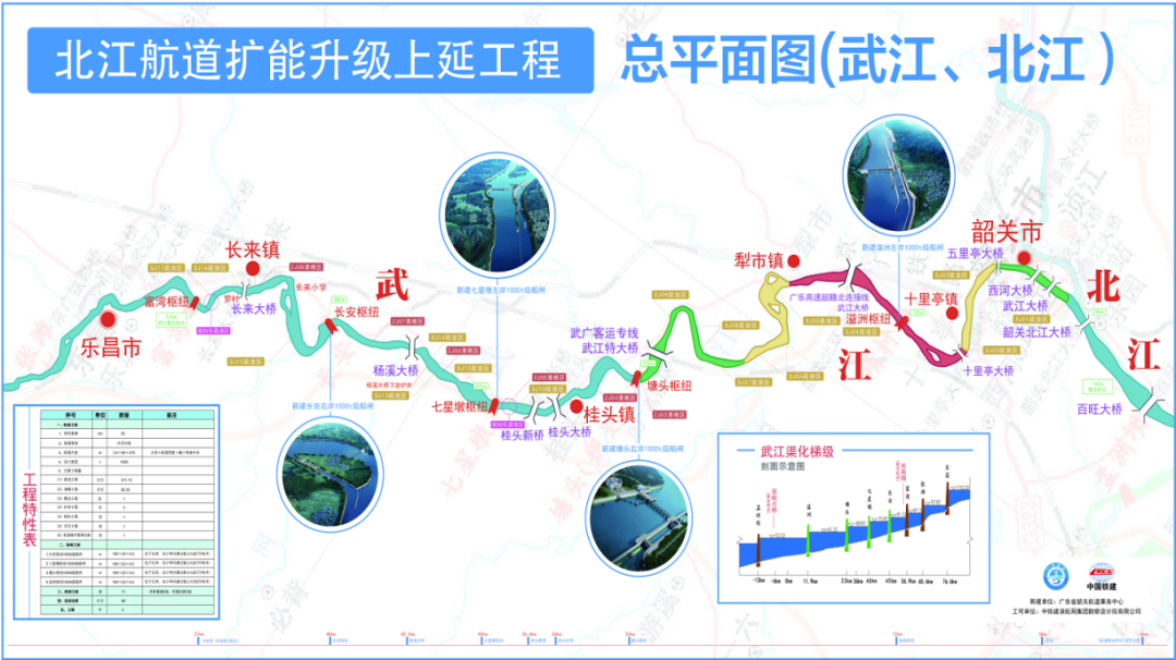 北江航道扩能升级上延工程是贯彻落实《国家综合立体交通网规划纲要》和《水运“十四五”发展规划》,完善粤北山区综合交通运输体系,促进沿线及周边地区产业发展,推动区域运输结构调整的省重点建设项目。项目起点位于乐昌长来镇,终点位于韶关百旺大桥,途经韶关市武江区、浈江区、乳源瑶族自治县以及乐昌市,全长63公里,主要建设内容包括航道工程、船闸工程、桥梁工程等,项目估算总投资65.86亿元。