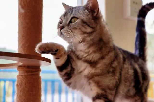 △小猫正在攀爬猫爬架。南方+ 刘宇恒 摄