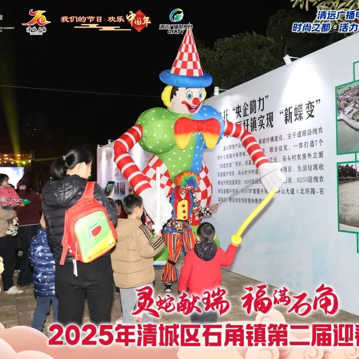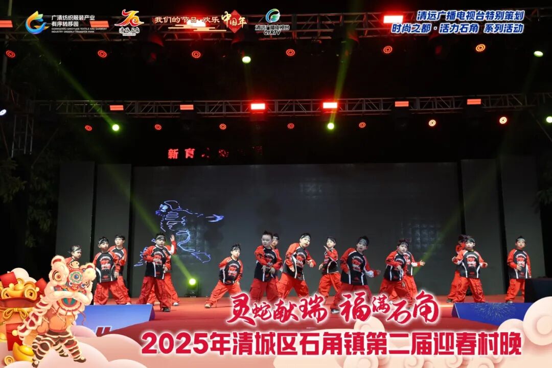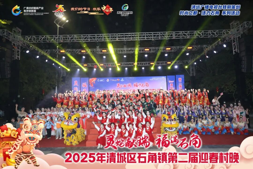 为推进“百千万工程”全域带动、重点提升,促进城乡融合发展,以文化赋能乡村振兴,营造喜乐安宁的节日氛围,清远广播电视台特别策划,由广清纺织服装产业有序转移园管理委员会、中共清城区石角镇委员会、清城区石角镇人民政府主办的“灵蛇献瑞•福满石角”2025年清城区石角镇第二届迎春村晚,于1月17日晚在石角抗洪抢险纪念公园(太极广场)隆重举行。