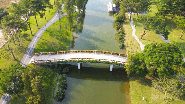 花地河示范段沿线原是一片缺乏人气的闲置绿地,林木茂密且仅有一条狭窄步道通行,整体存在望江视线不通、活动功能不足、慢行系统缺失、功能配套不完善等现状问题。花地河滨水环境整治工程重新打开水岸空间,拉通线性交通,将闲置空地改造为活动广场,将低效绿地提升为儿童乐园,打造与城市互联互通的休闲水岸。项目结合新建市政道路,梳理滨水慢行空间,融入生态海绵设计,解决路面排水、积水等问题,在保障人车分离的同时,贯通漫步道、骑行道、慢跑道三道;在二级堤之间增加无障碍通行,优化过街设施,实现慢行道互联互通,提升人行空间,保障出行安全。项目活化沿线桥梁、铁路桥等原有历史文化场所,建设石围塘铁路花园,打造工业印记打卡点和服务驿站,回溯历史记忆;打提升桥底负空间,增加配套设施,补充健身运动功能,形成高效的滨水户外聚集地;结合居民需求,谋划户外家庭游乐聚场,营造老城区第一段儿童友好型滨水空间。