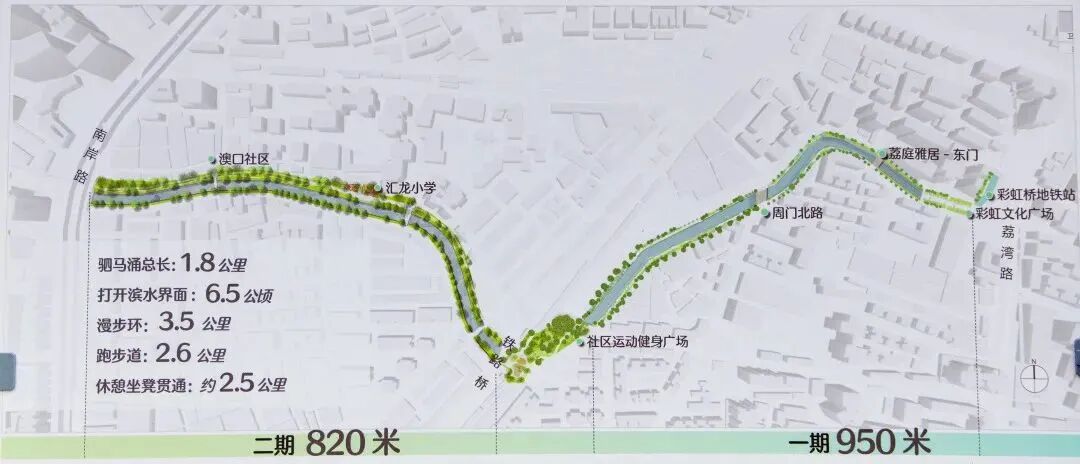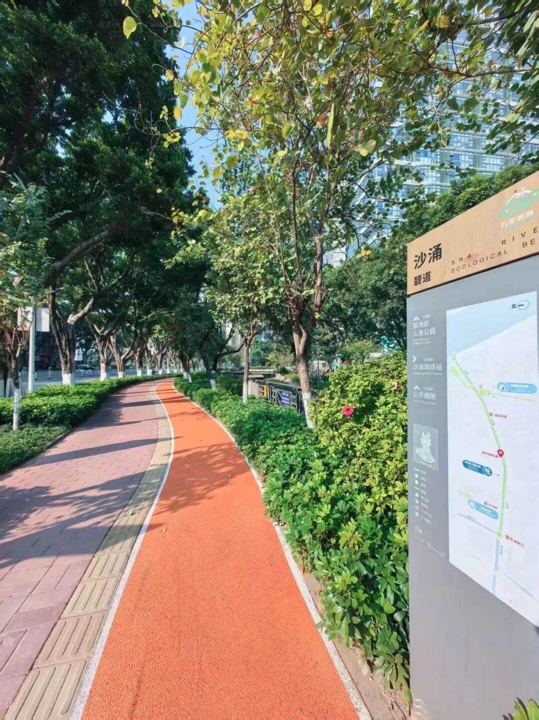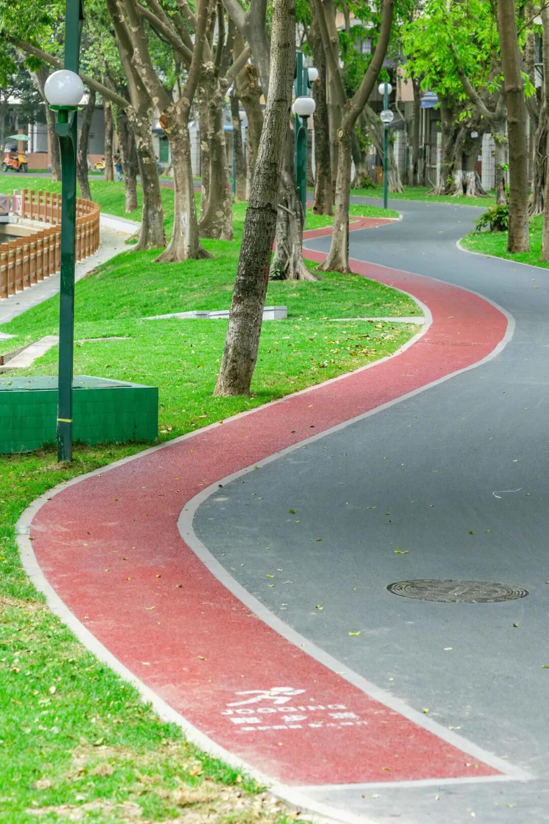 整治工程还通过合理规划漫步道、跑步道、自行车道、机动车道,形成3.54公里漫步环线和2.72公里跑步道,实现慢行系统全线贯通,滨水岸线将荔湾路、彩虹桥文化广场、周门北路、汇龙小学、澳口社区以及涌边其他社区等新旧街约、社交空间串联起来,使得河涌转变为健康社区绿廊。