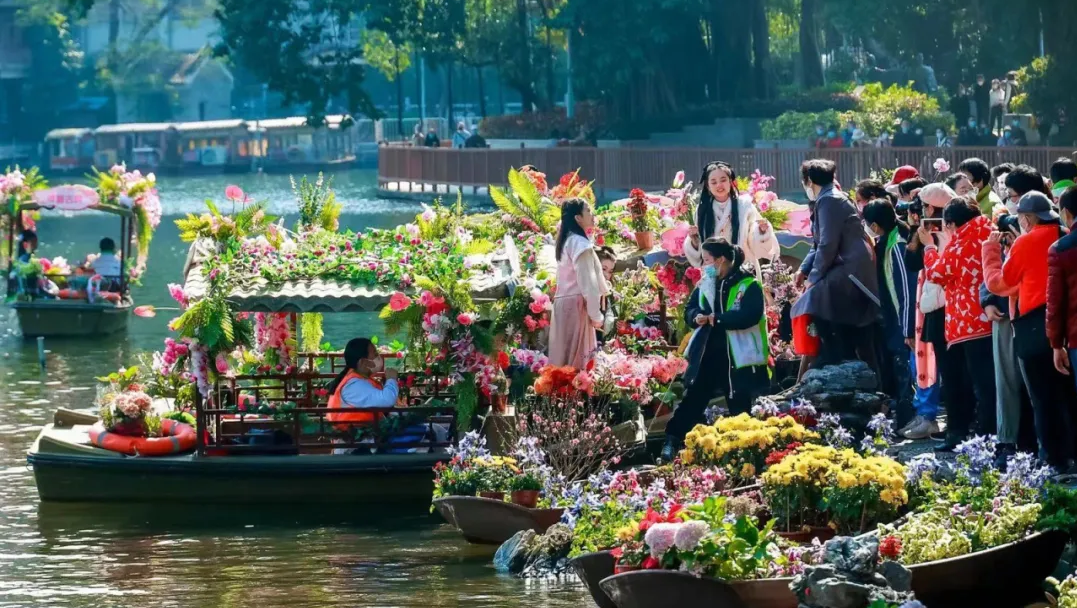 花地河始于隋,兴于宋,拥有千年历史。“花地”原名“花埭”,寓意开满鲜花的堤岸,隋代就已形成面积较大的花田。花地河北出口东岸,在唐宋年间是扼南北交通咽喉的外贸大港——大通港(宋代称大通滘),亦是羊城八景之一“大通烟雨”的所在地,南来北往的商贾带来各地花种,舶来的花卉也多在这里“登岸”,周边沼泽湿地被开垦成了花田,花地之名,由此而来。