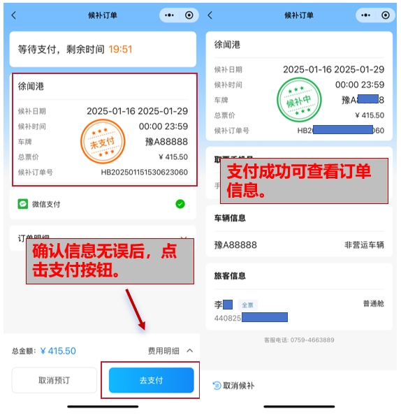 港口已启动船票候补功能,如果您没买到票,可以在“徐闻港购票平台”申请候补购票。候补订单付款后,需要等待匹配合适的航班。当有其他旅客退票、改签使得指标释放,或我公司根据候补情况增开航班时,会优先给候补订单进行匹配,匹配上了才是候补成功,候补成功会有短信通知。