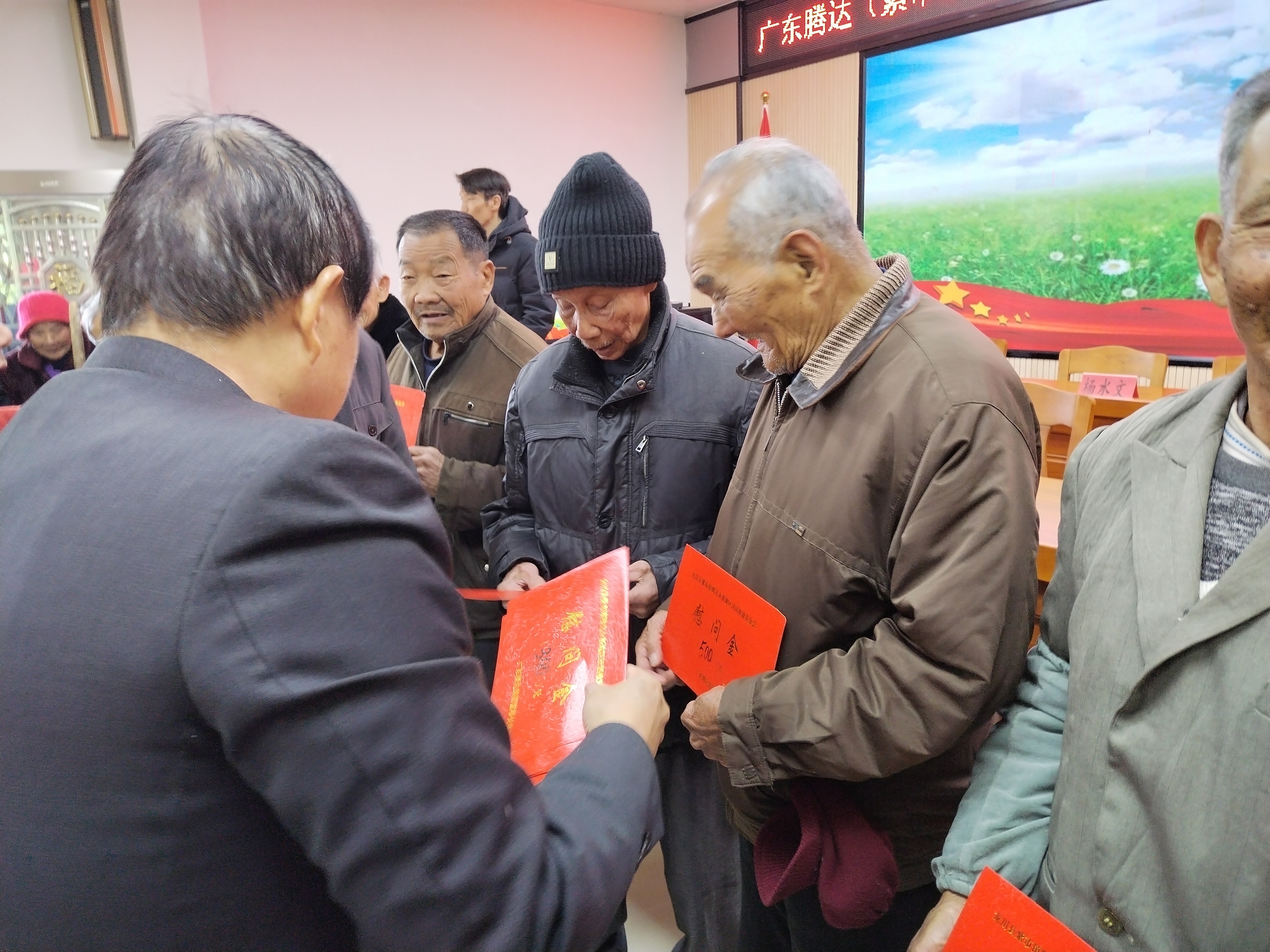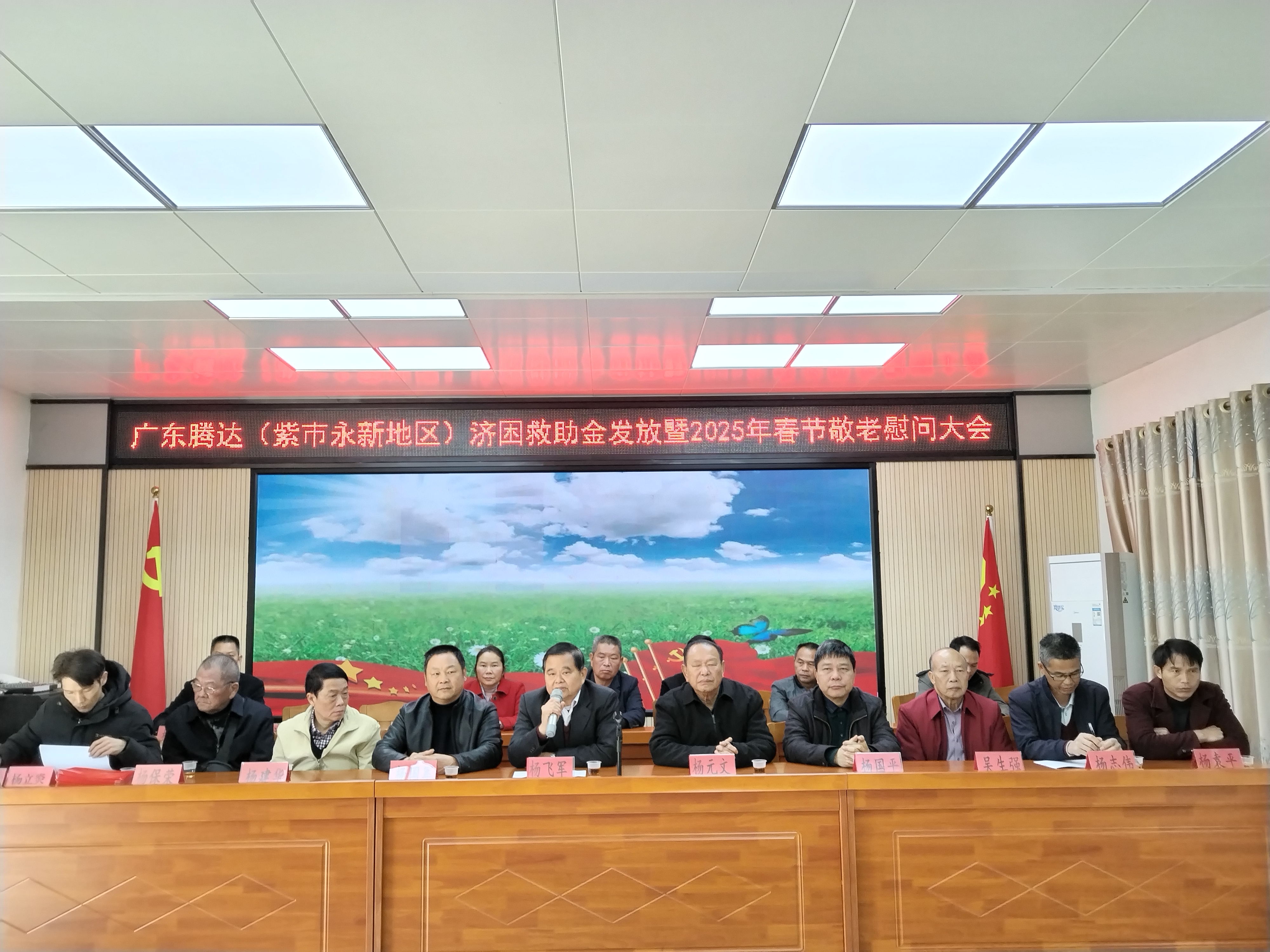 会上,广东腾达集团(紫市永新地区)济困救助基金会理事会有关人员转达了当地热心企业家、广东腾达集团董事长杨国平先生对家乡父老乡亲的深情厚意。