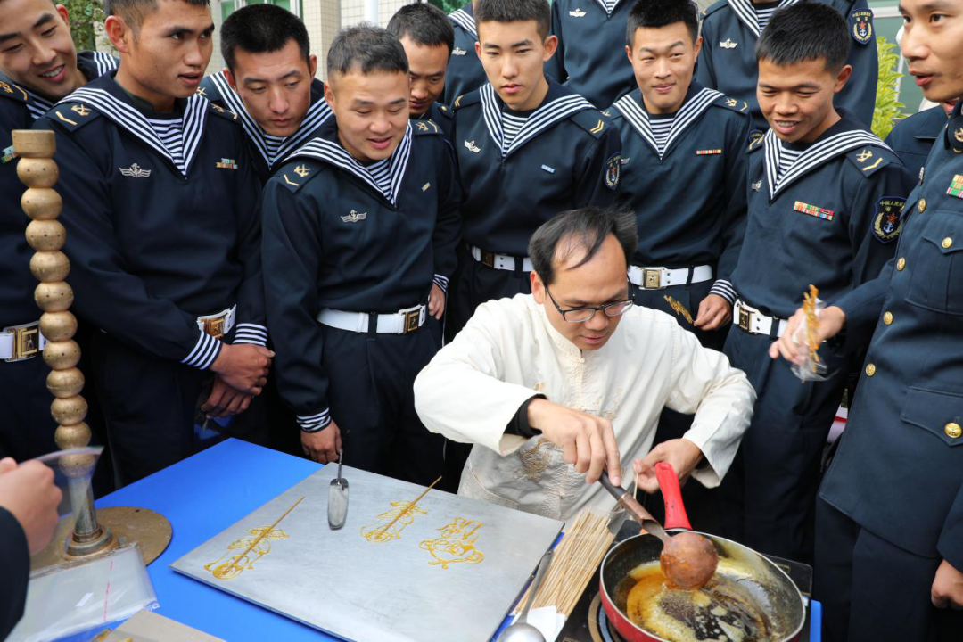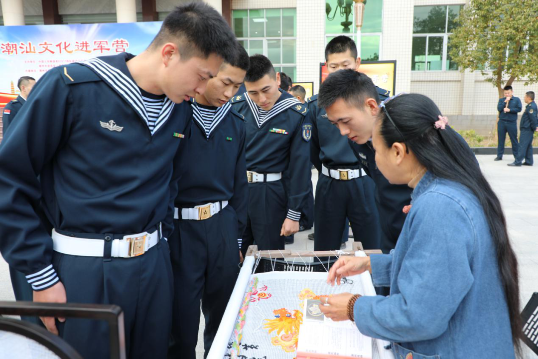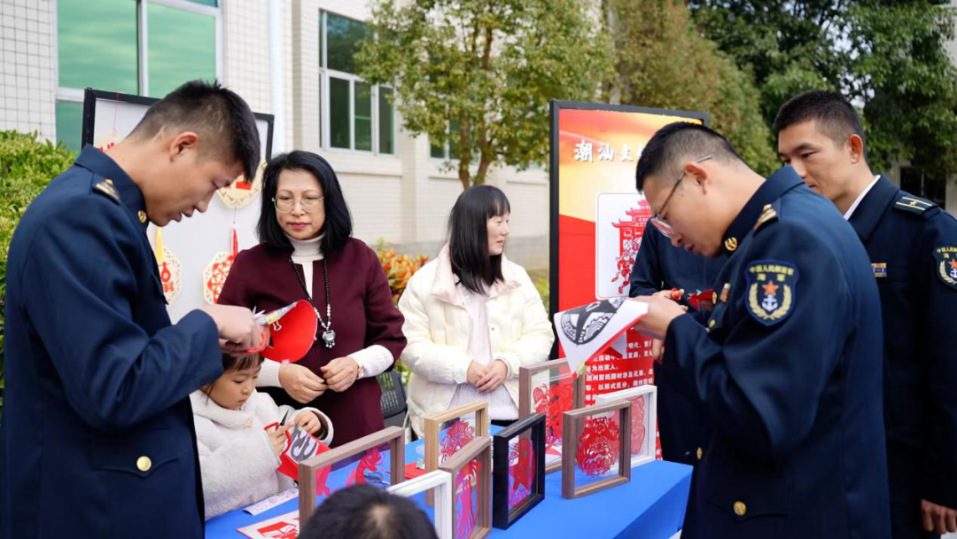为进一步丰富驻地官兵文化生活,增强对第二故乡的归属感与认同感,推动新时代军地双拥工作高质量发展,由潮州市双拥办、潮州市退役军人事务局、潮州市妇联、潮州军分区政治工作处、潮州市妇女儿童活动中心联合组织,邀请书法、手拉壶、潮绣、潮州工夫茶、剪纸、糖画、插花、木偶戏、英歌舞等20余位潮汕文化技艺传承人走进军营,开展“潮汕文化进军营 军民鱼水一家亲”文化集市进军营活动,为官兵们带来一份独特的文化体验,同时将潮州浓浓的年味带入军营。