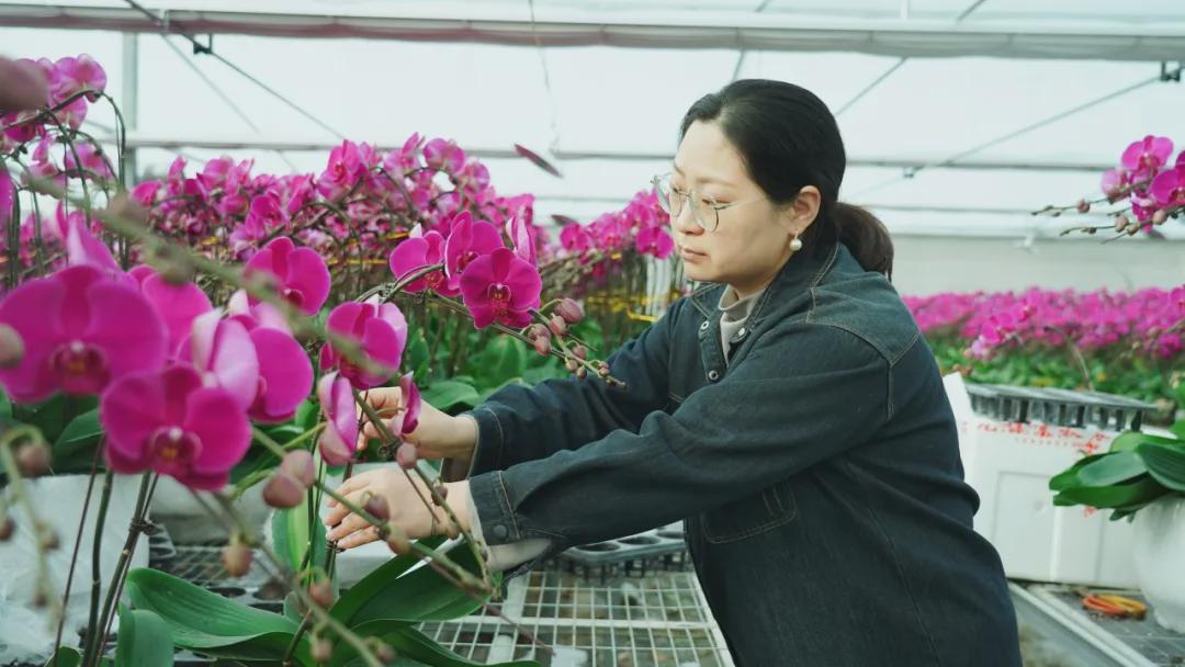 图 | 王俪颖正在整理蝴蝶兰