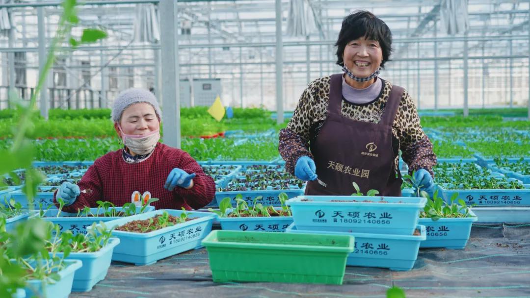 图 | 工作人员正在大棚内整理蔬菜盆栽