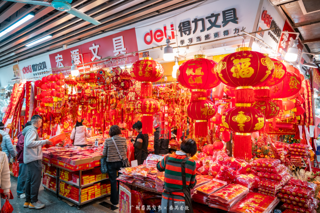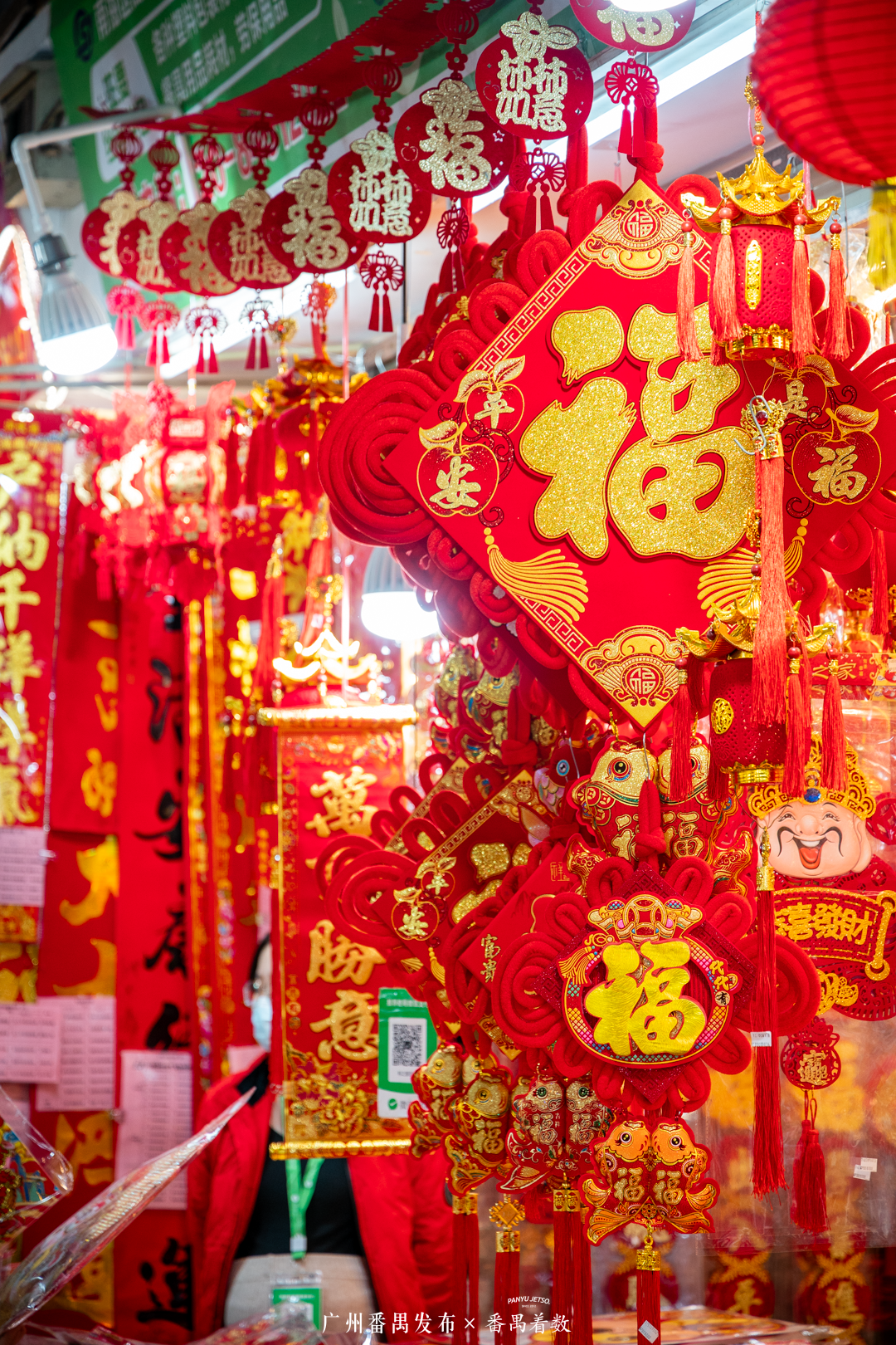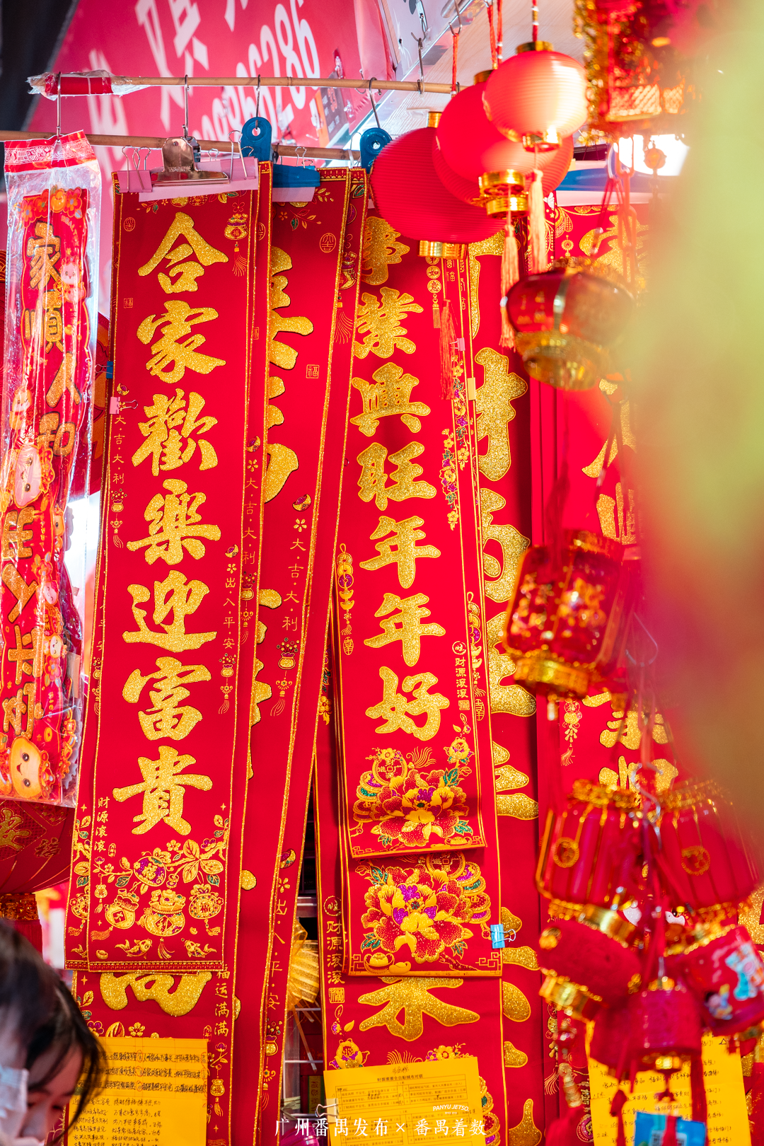 当你走在番禺的街头巷尾,听到《迎春花》、《恭喜发财》、《财神到》、《祝福你》等一首首熟悉的bgm,看到喜庆的红灯笼和挥春,就知道春节又要到啦~