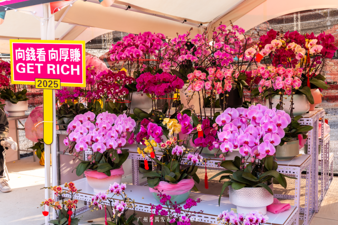 颜色鲜艳、个头大的蝴蝶兰是街坊们的心头首选,牡丹、金元宝、猪笼入水、冬青也都备受欢迎。