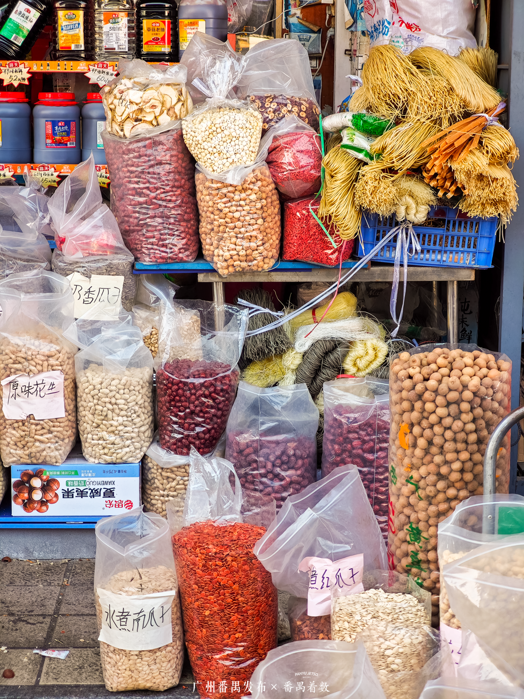 走进市场,映入眼帘的是堆积如山的干货,口味各不相同的瓜子、花生,你想要的过年小零食都可以在这里安排上。