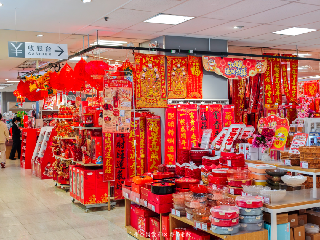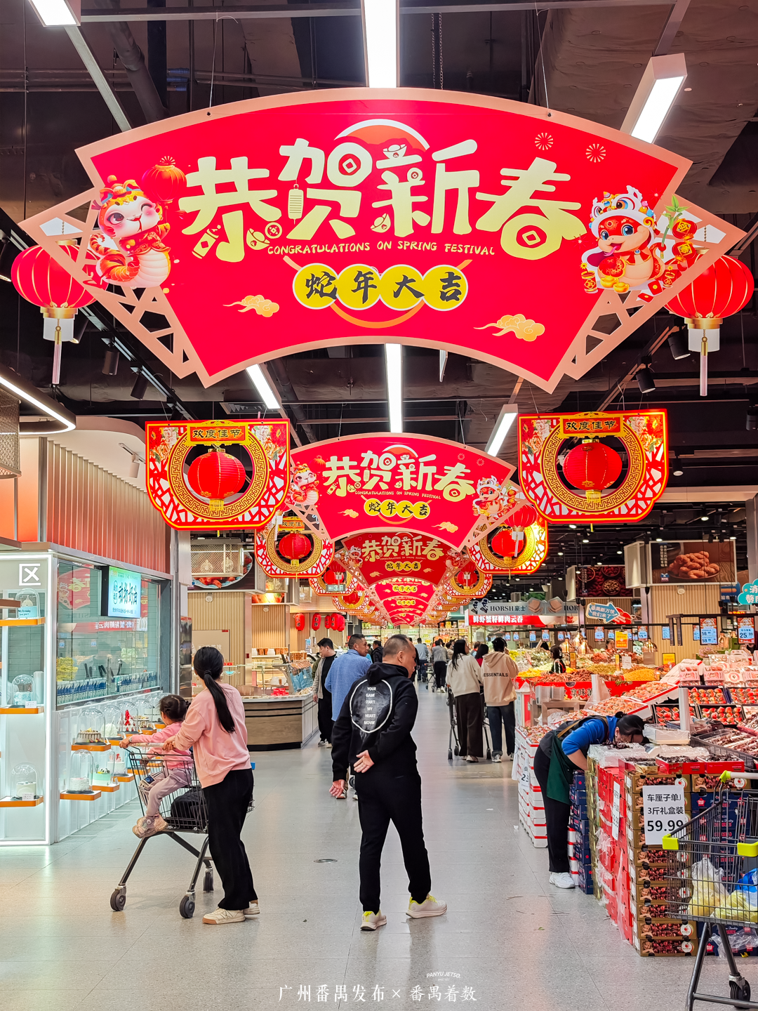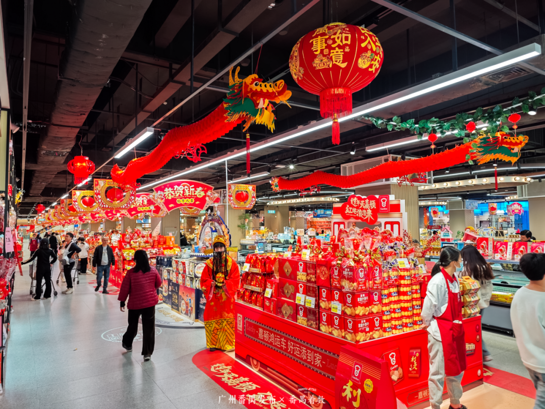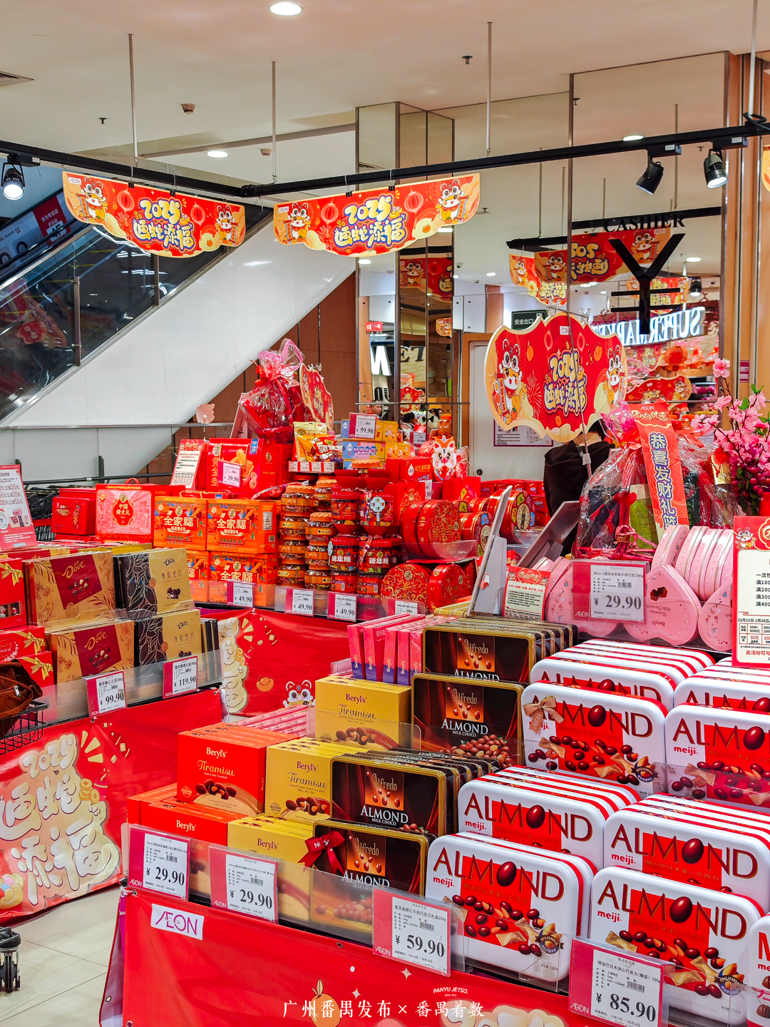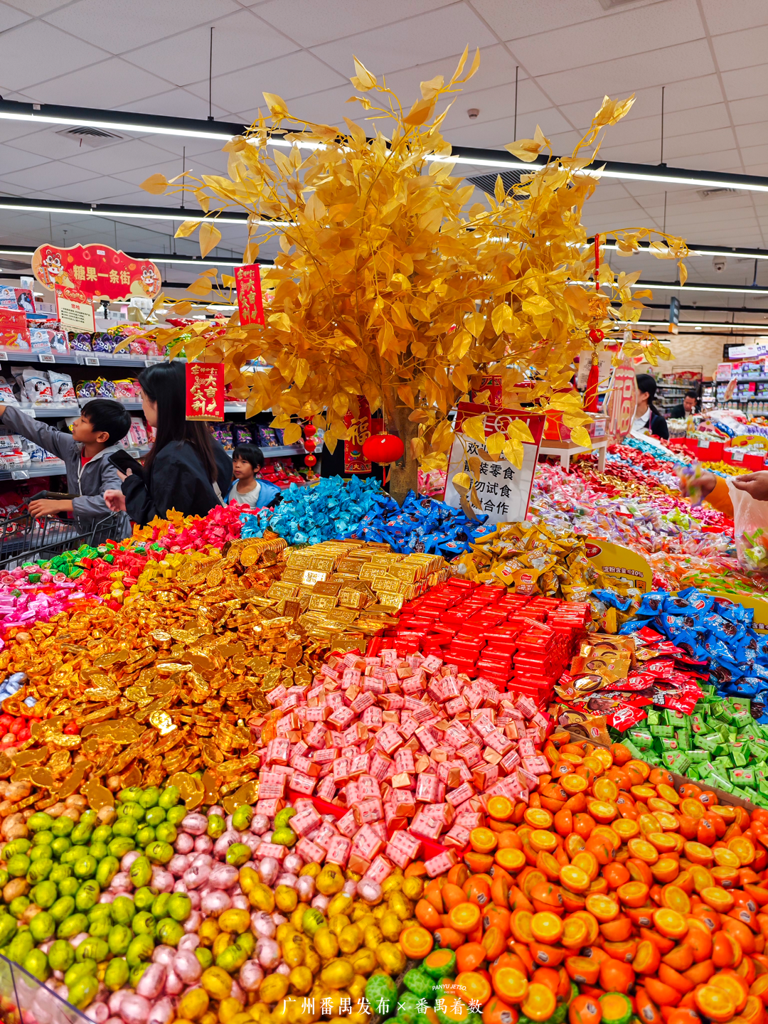 除了番禺的各大传统市场,新派的商场也成为了不少年轻街坊们的选择。各种新年零食、对联、挥春、海鲜干货、年花年桔、坚果礼盒……各种年货一站式就能购齐,不用出远门,在家楼下就有!