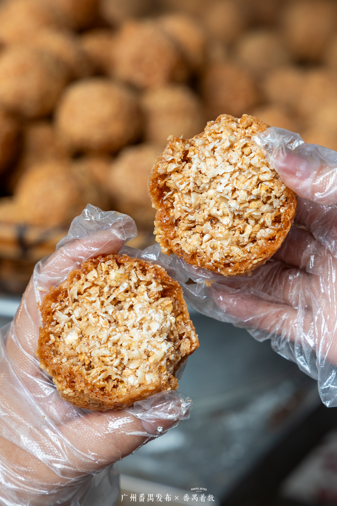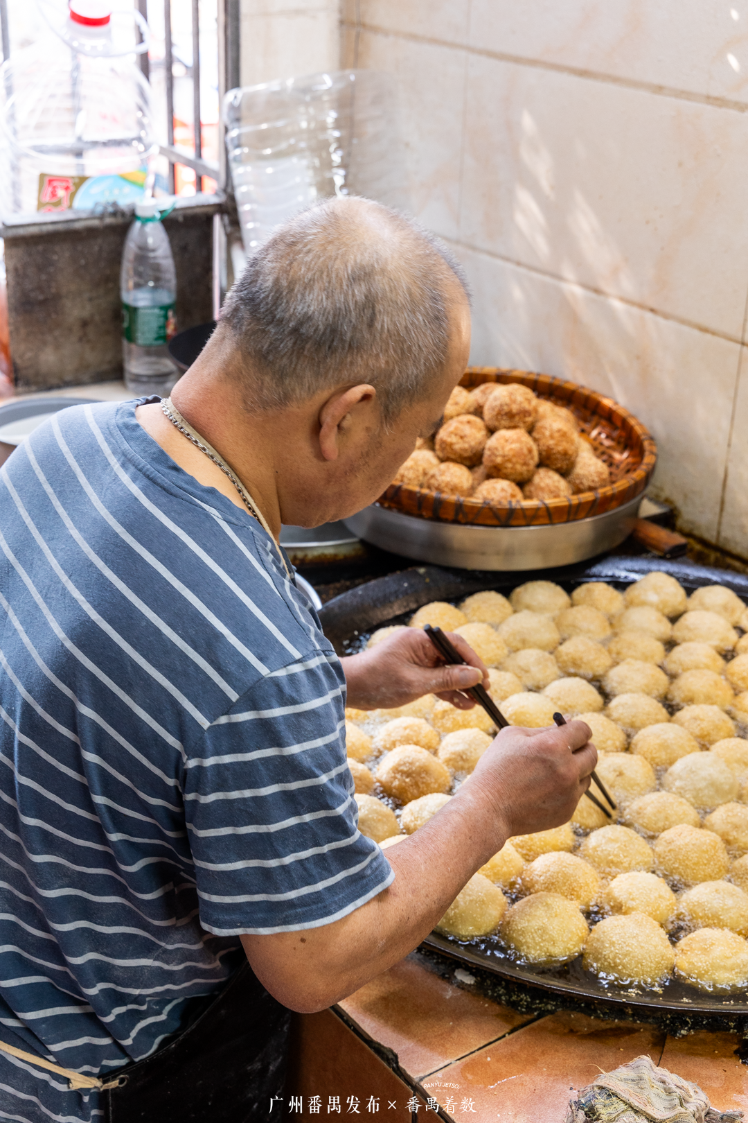 番禺的大街小巷里,就藏着许多支起油锅现炸现卖的小店。例如三塘市场附近的九记,四十多年的历史,纯手工制作,现炸现卖,浓浓的地道年味。
