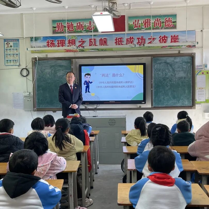 2025年1月13日,法治副校长徐鉴雄和校外法治辅导员郭聚贵,共同来到封开县南丰镇中心小学(附城校区),为孩子们讲授了未成年人保护“两法”相关的法律知识。