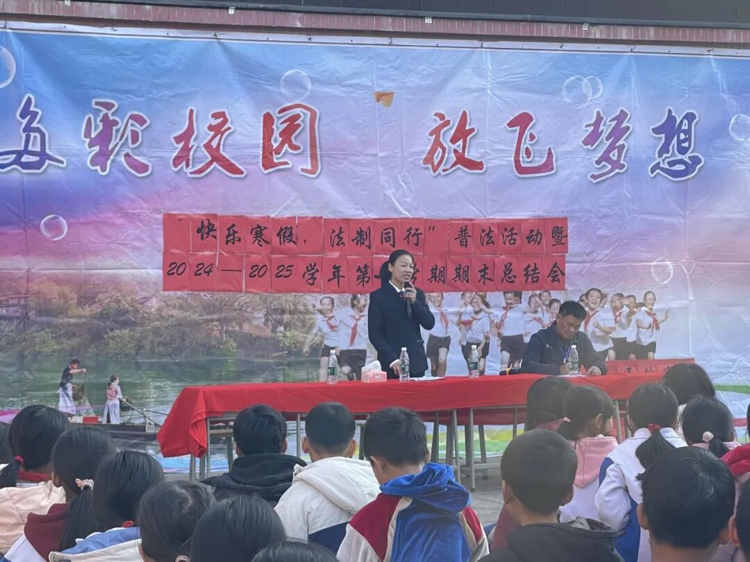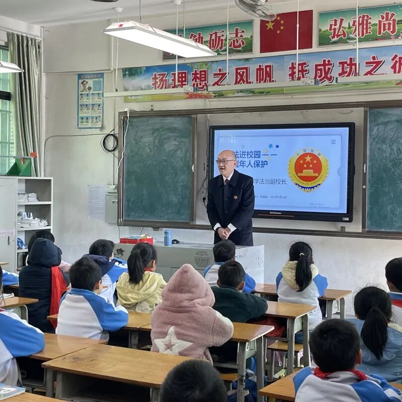 2025年1月19日,法治副校长祝莹到封开县长岗镇谷圩小学,向同学们讲授关于交通安全、网络安全、用电安全等日常知识,引导同学们要注重培养安全常识,平安过好年。