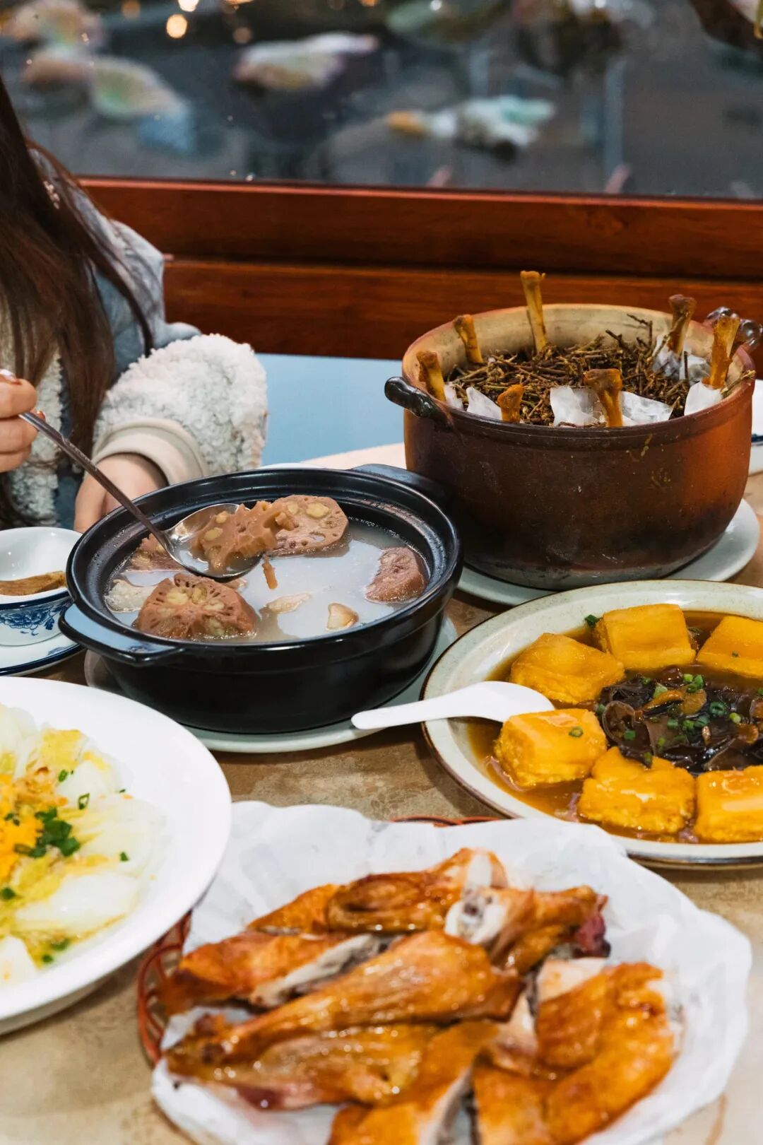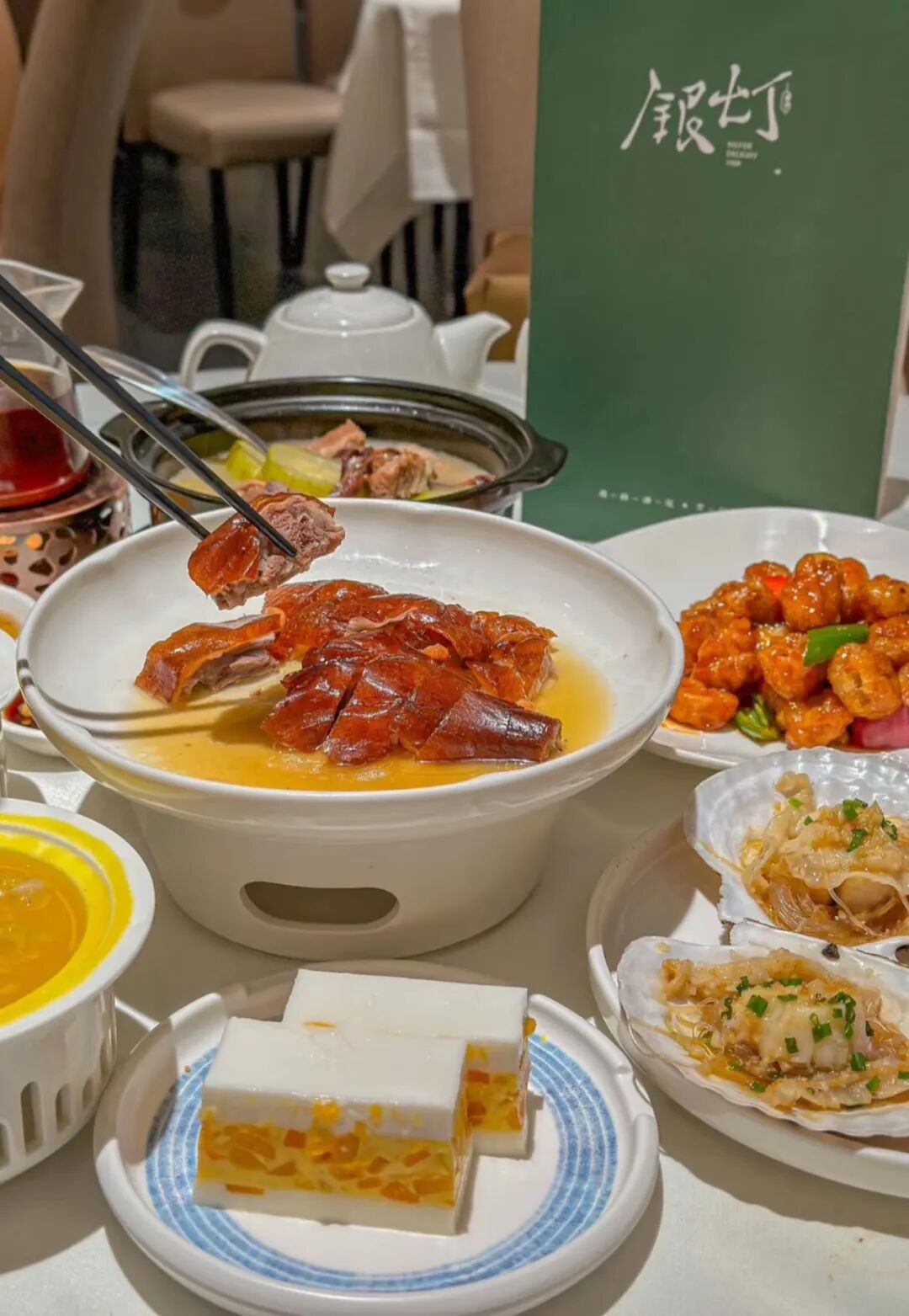 随后去白天鹅玉堂春暖餐厅享受晚餐,店内装修极具岭南风情,白切葵花鸡、黑毛猪叉烧、榄仁萨其马都是个顶个的天花板级招牌菜。