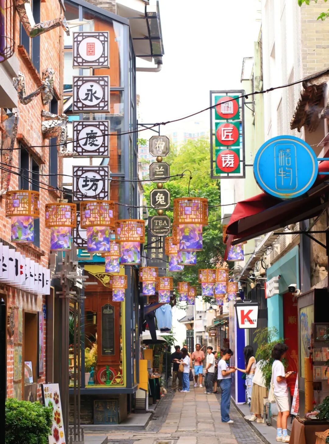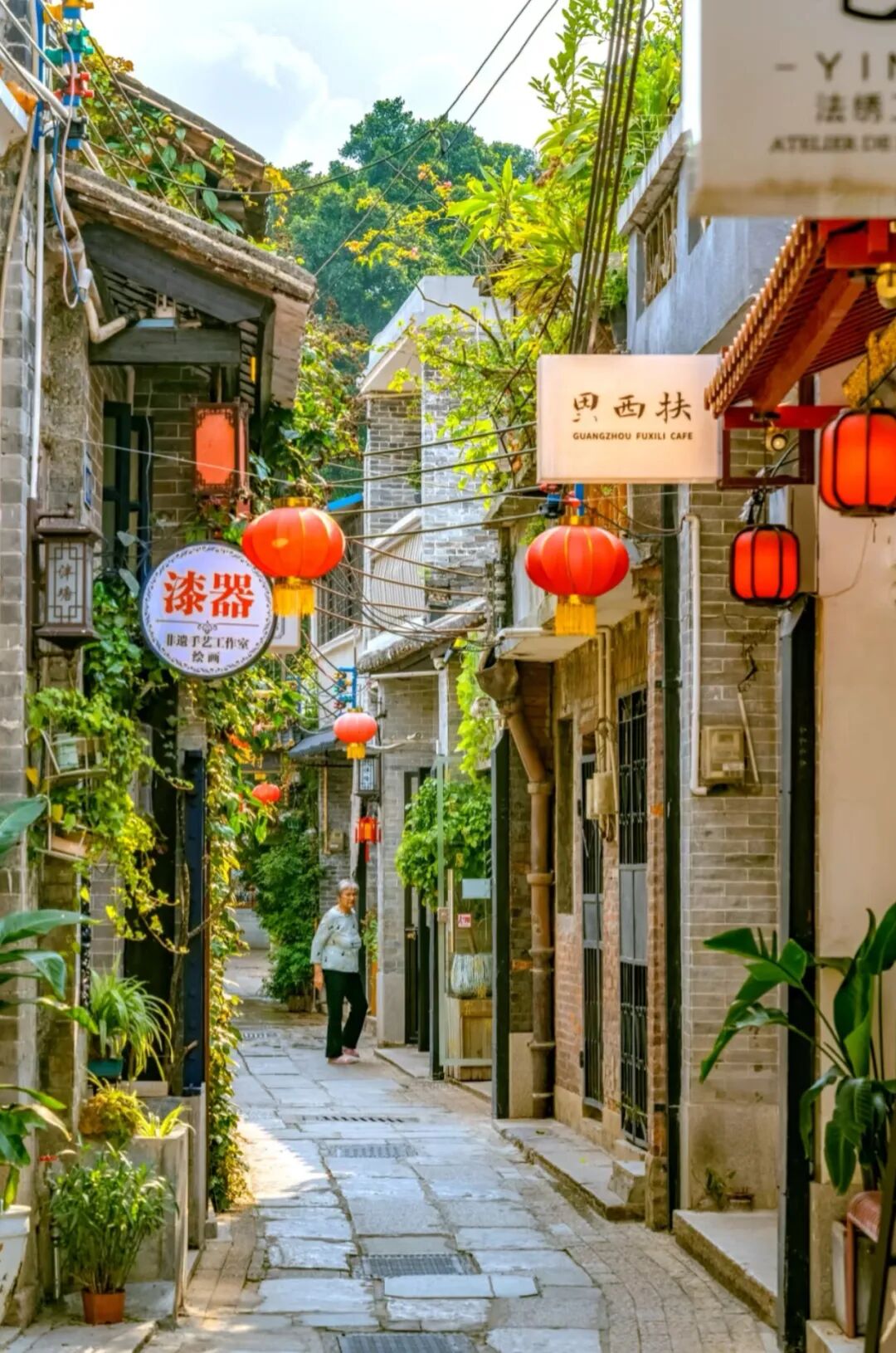 吃饱喝足后步行至永庆坊,这里保留了青砖屋、红砖房、趟栊门、满洲窗、石板路等元素,永庆坊所在的恩宁路拥有广州保存完整的骑楼建筑群,展现了岭南传统建筑风格。