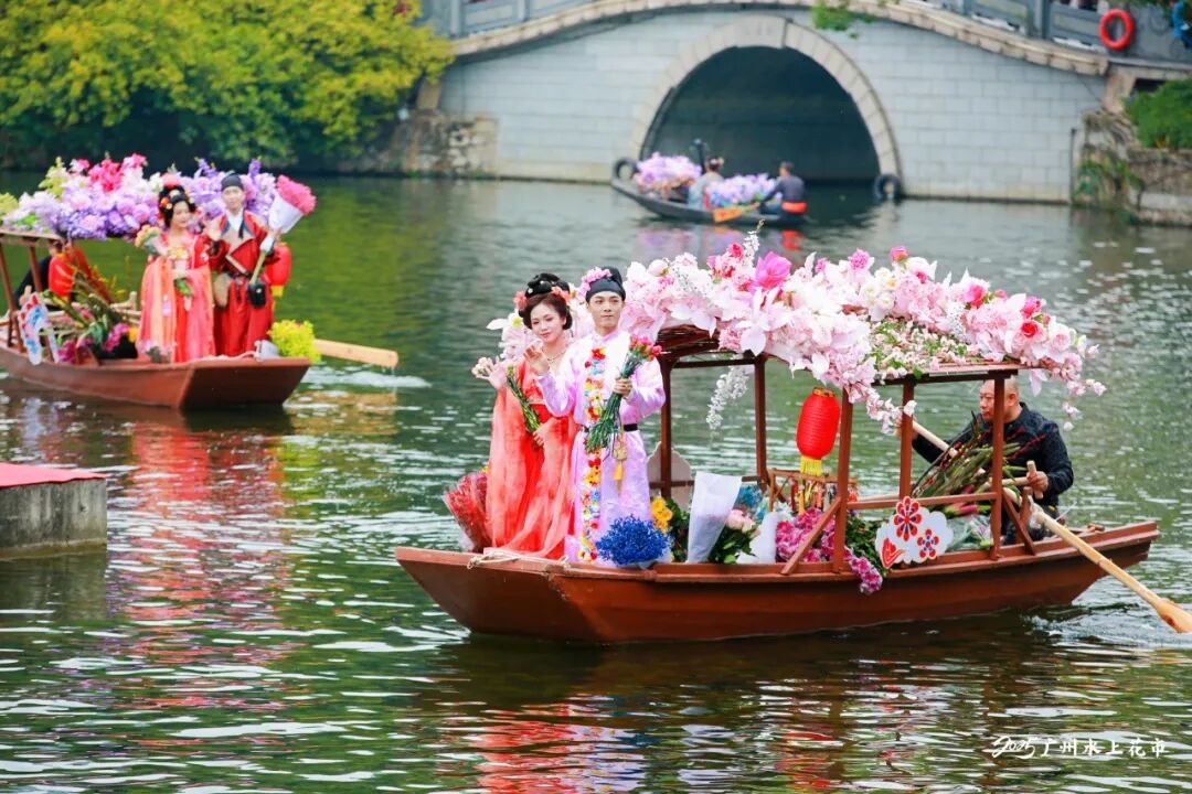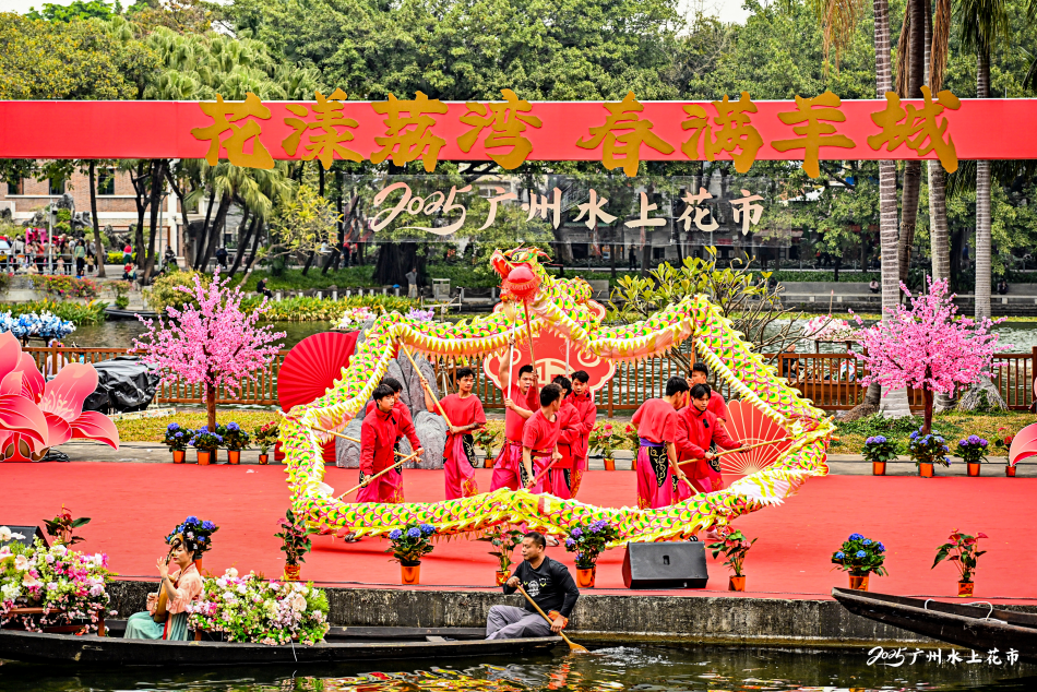 联动岭南花卉市场、广州花卉博览园等花卉企业,以水陆结合为奇思妙想,精心雕琢出一个繁花似锦的节庆仙境。花舫巡游、民俗体验、艺术剧场、快闪表演等应有尽有,让市民游客深入体验到浓厚的广府迎春的喜庆氛围。