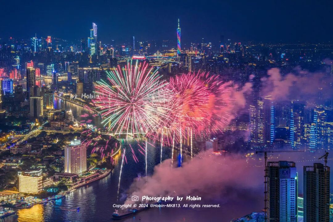 最后,2025年春节烟花汇演再度上演,本次烟花汇演以白鹅潭大湾区艺术中心为烟火背景,设置了4个主题篇章,不仅烟花品类更新、数量更多,画面更大,而且结合珠水鹅潭一江两岸城市景观,融入了 2025 架无人机表演以及灯光秀、视频投影等内容,绘制出一幅喜庆祥和充满希望的新春画卷。绚丽的烟花在夜空中绽放,为这趟美好之旅画上圆满句号。