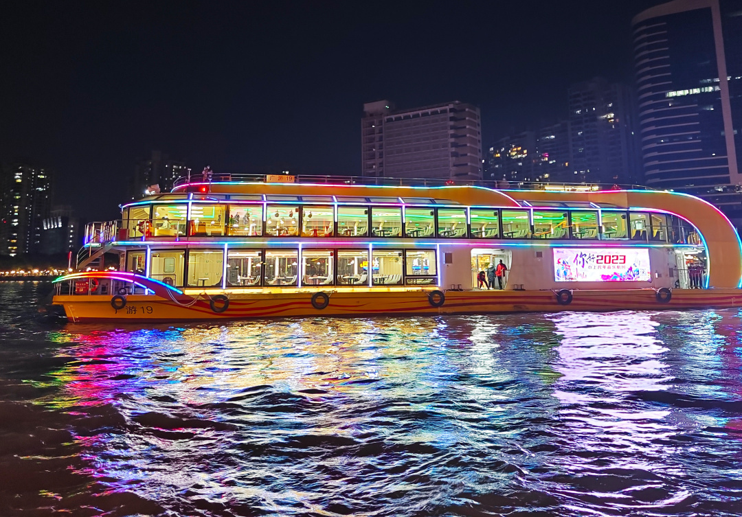 再到西堤码头开启珠江夜游,璀璨灯光下,感受广州独特的城市魅力,换一个视角认识广州。