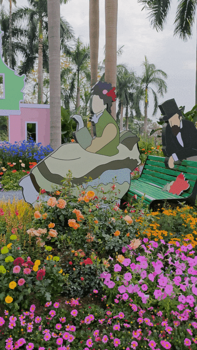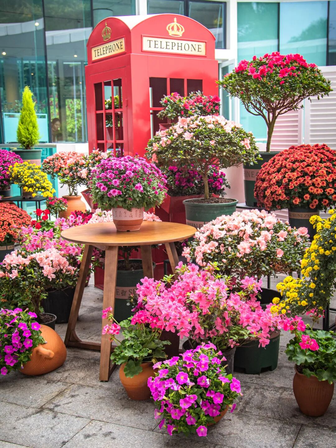千万不要错过花城艺术馆周边的容器花园。在这里,你可以看到“爆出亭台”的安酷杜鹃、从南瓜里长出的乒乓球菊等梦幻场景,花海中搭配复古电话亭、秋千,往那一站就很有故事感很好出片。