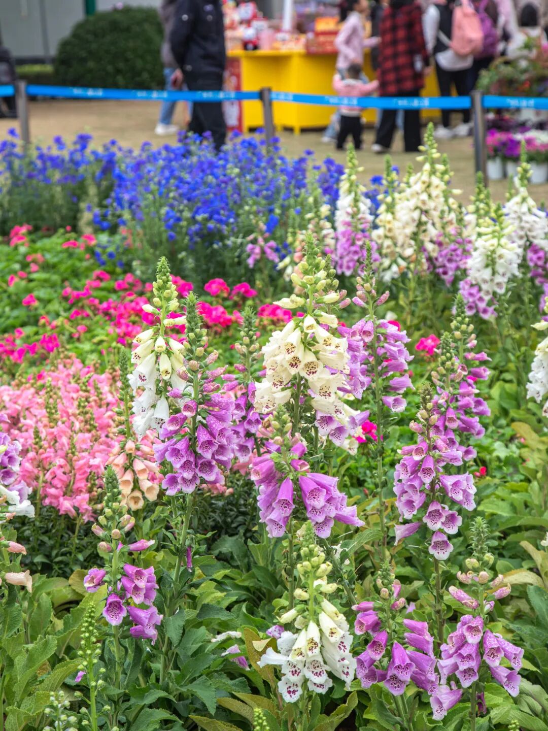 今年园博会主题是“花容粤貌 悦动湾区”,主题花是大花飞燕草,毛地黄、蜀葵、一串蓝、鲁冰花等竖状花卉点缀其中。