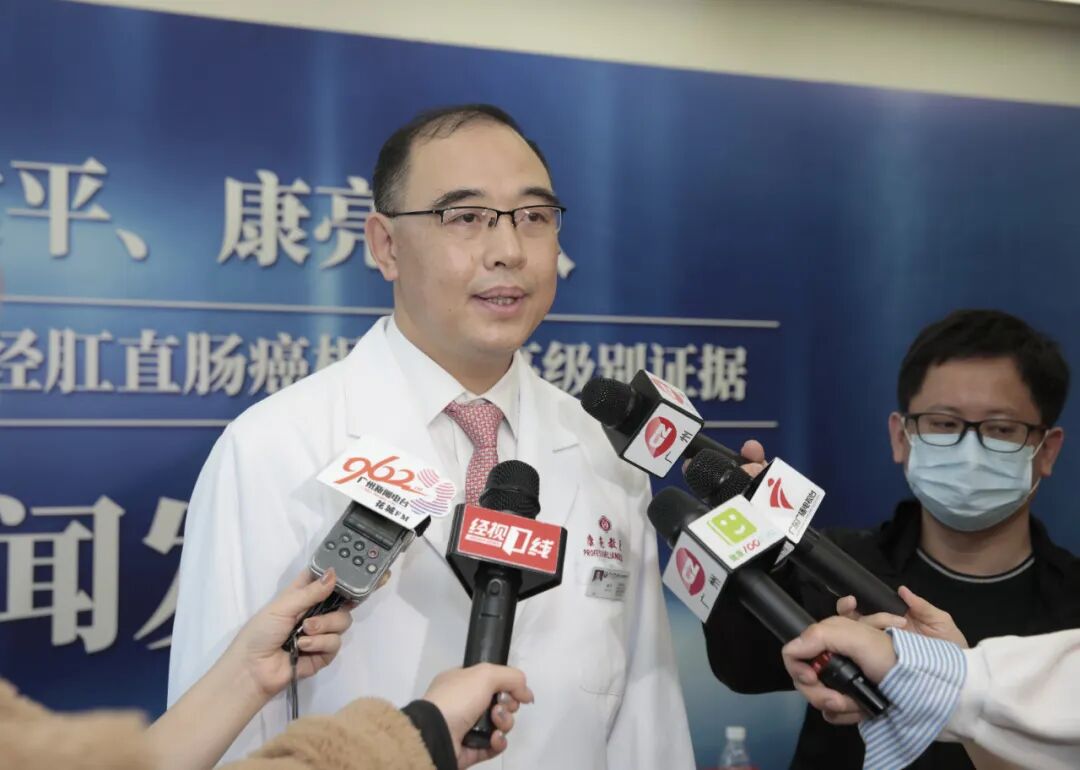 2025年1月24日下午,我院就该成果发表召开新闻发布会,我院院长、结直肠外科吴小剑教授,结直肠外科学科带头人兰平教授,胃外科学科带头人彭俊生教授,盆底肛肠外科学科带头人任东林教授,副院长、结直肠外科康亮教授,中山大学公共卫生学院凌莉教授,中山六院胃外科二区主任杨祖立主任医师,结直肠外科黄亮主任医师,结直肠外科刘华山副研究员,结直肠外科曾子威博士后等文章作者,接受省内主流媒体的20多名记者采访。会上介绍了研究背景及过程,基于该研究成果,与会者畅谈taTME在结直肠癌治疗方面的广阔前景。