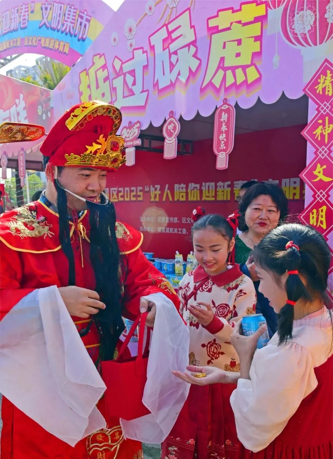 其中,区委宣传部、区文明办组织区内“好人工作室”、志愿者、区有关部门工作人员,将志愿服务、宣传服务与春节氛围相结合,传递温暖与正能量,增强全民国家安全意识,加大乡村绿化、非遗文创、中医药文化等宣传力度,打造了独具特色的文明集市。