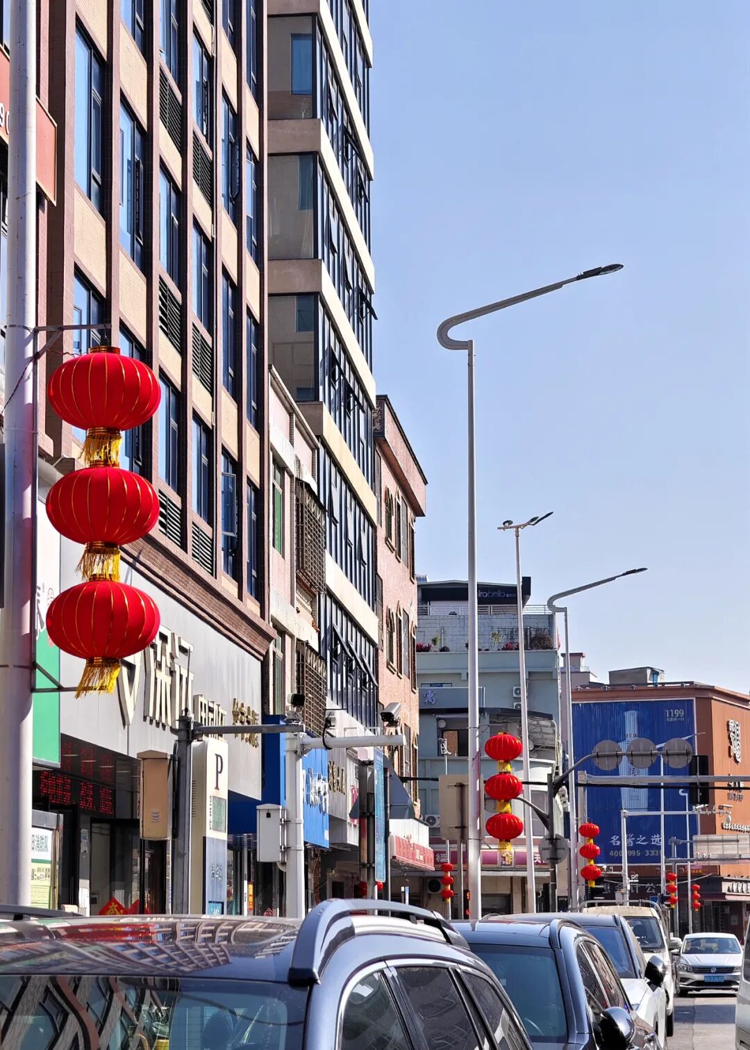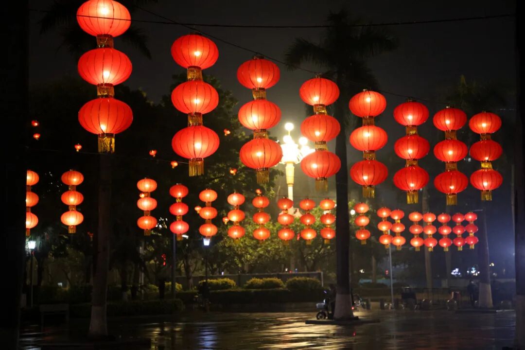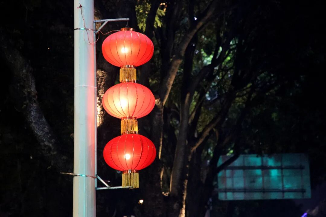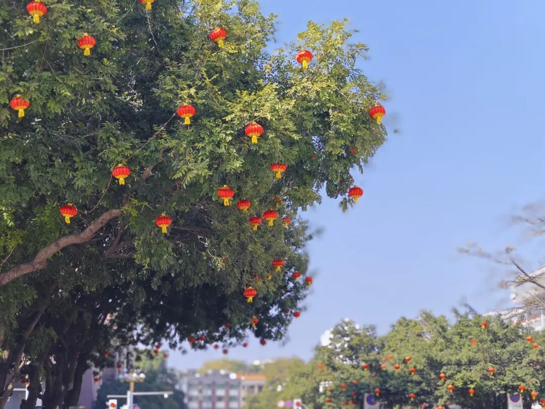 德政街、顺发路、振华路等主干道两侧,火红的灯笼串、中国结高高悬挂,与两旁的中华灯相映衬,让原本霓虹交错、灯影幢幢的街道更加美轮美奂。