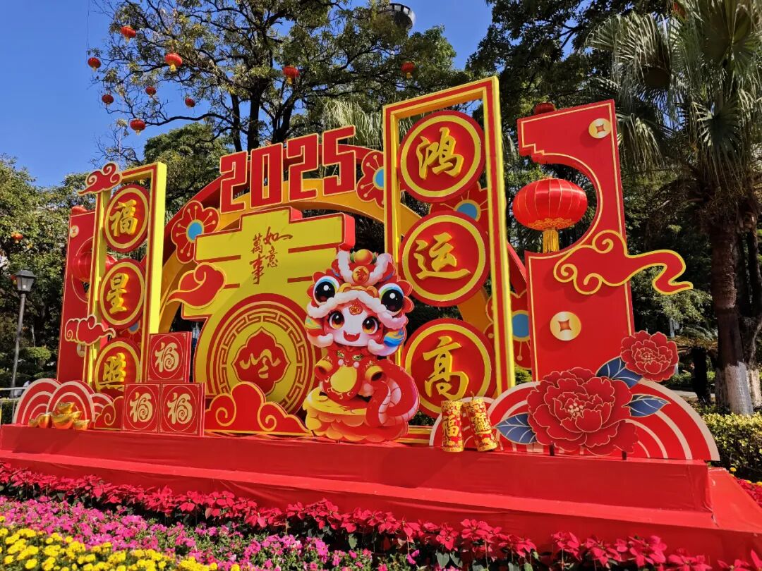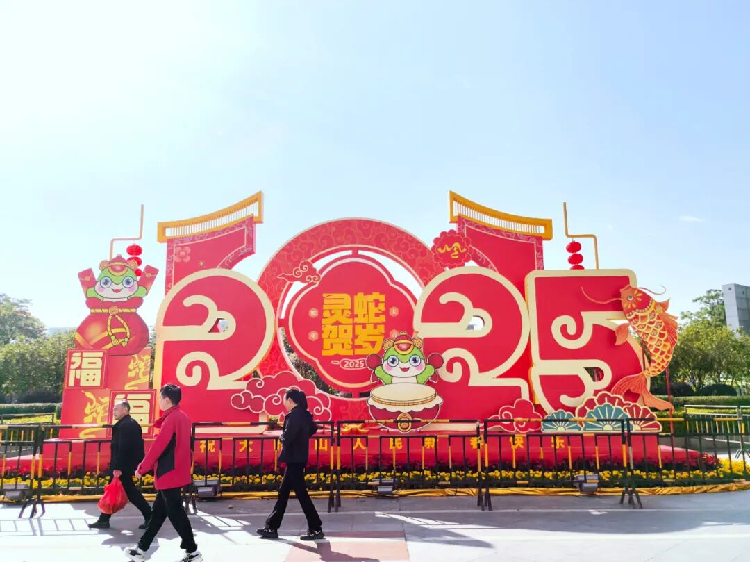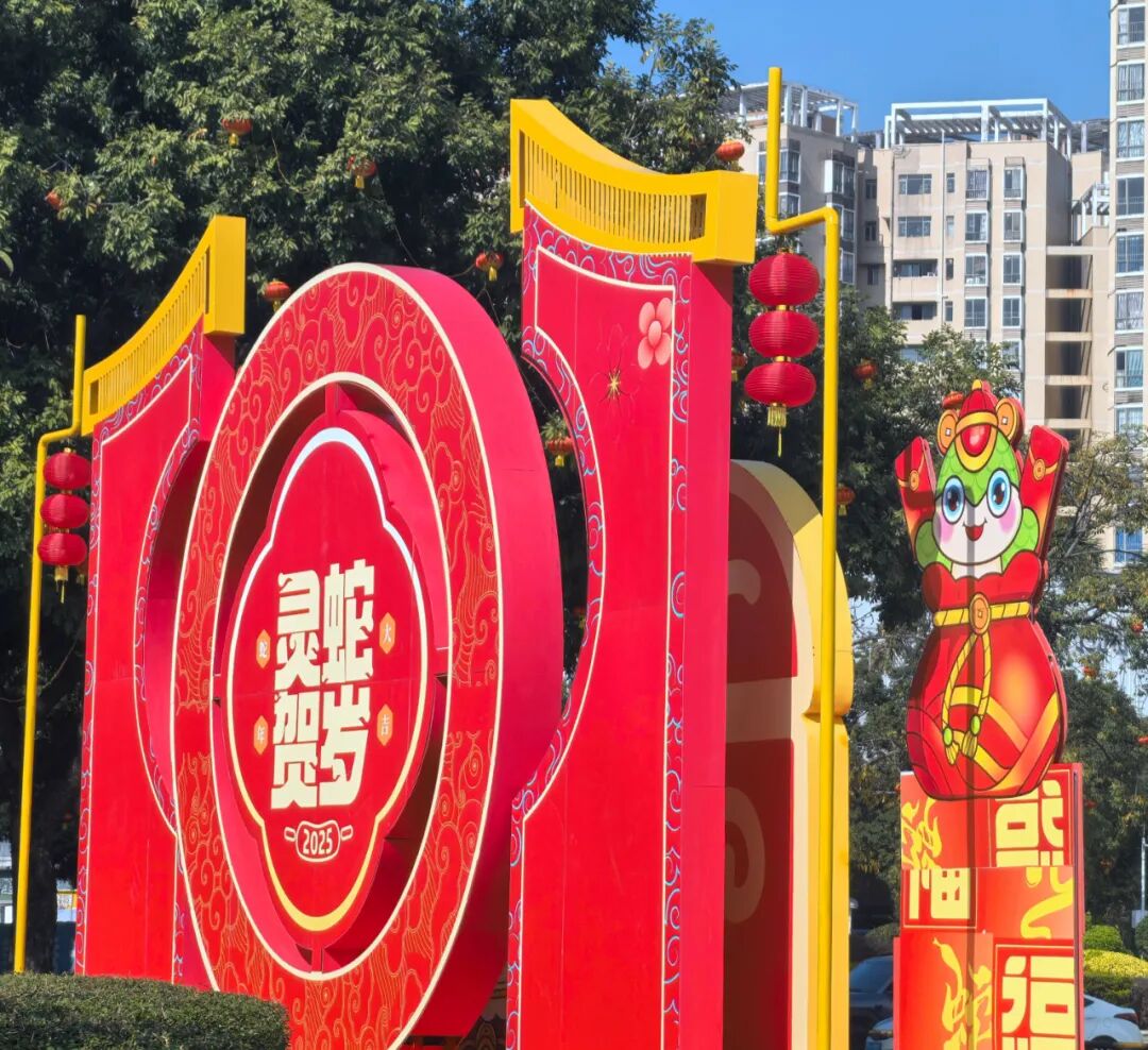 造型灯组无疑是最具人气的打卡点,今年的这些灯饰设置在大岭山广场、图书馆、体育公园等地,结合生肖蛇图案,融入灯笼、中国结、祥云、金元宝、中式花窗等元素,造型别致多样,吸引不少市民驻足欣赏、拍照打卡。