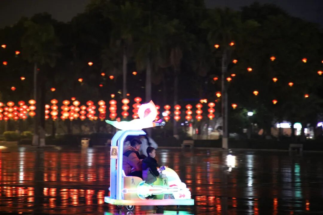 夜幕降临,迎春花灯全线点亮。从镇中心主干道到广场公园,五彩斑斓的灯光交相辉映,勾勒出美轮美奂的城市夜景。