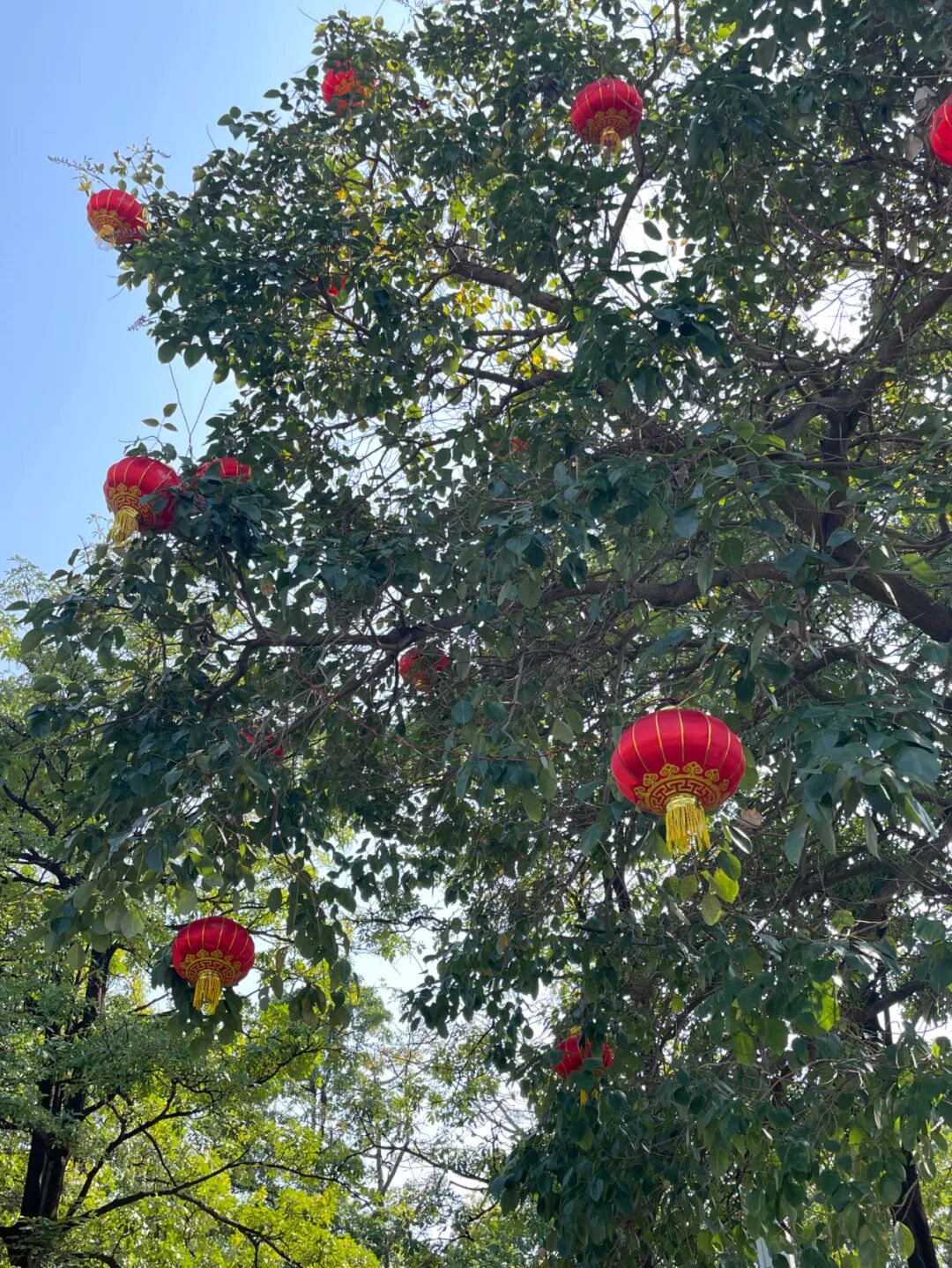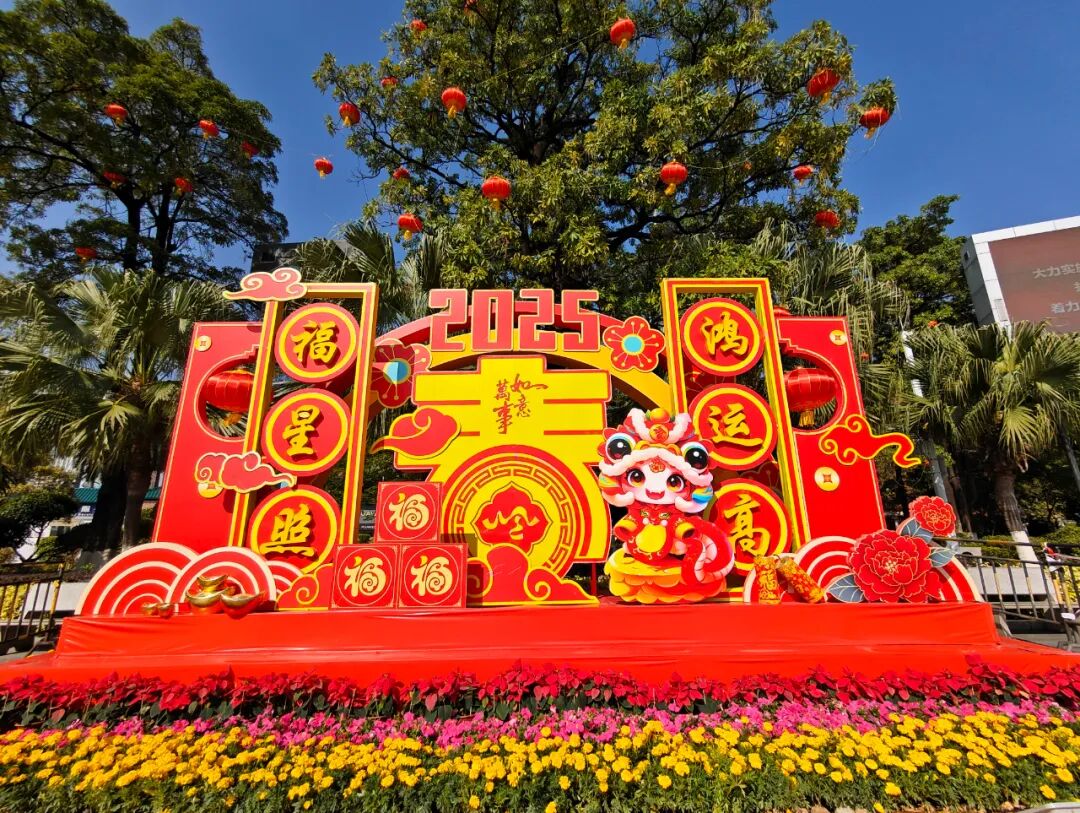 大岭山广场的绿植也纷纷换上“新衣”,搭配造型各异的灯饰,灯笼、流星灯、造型灯组等点缀在枝头,每一个角落都经过了细心布置。灯串缠绕树干,满树的星光璀璨,错落有致的光影效果,使得镇区的夜晚更加迷人。