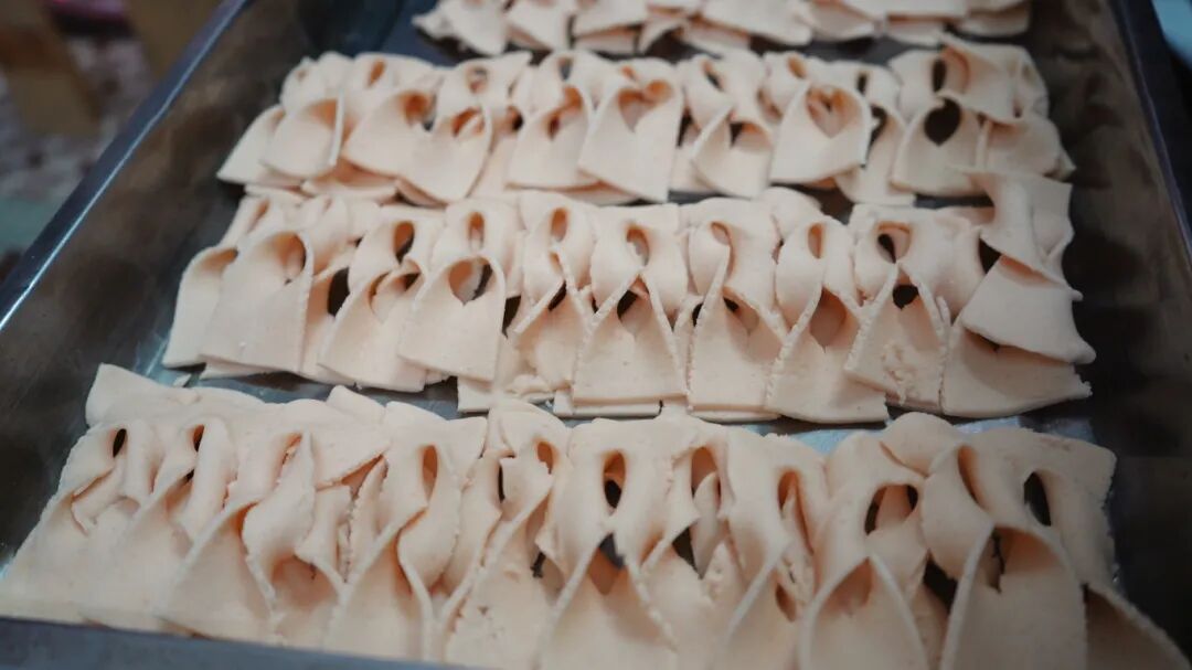 走进麻涌麻四村颜姨家,颜姨正和几位老友分工合作做年货,揉面团、划面皮、做造型等,欢声笑语不时在屋内回荡。