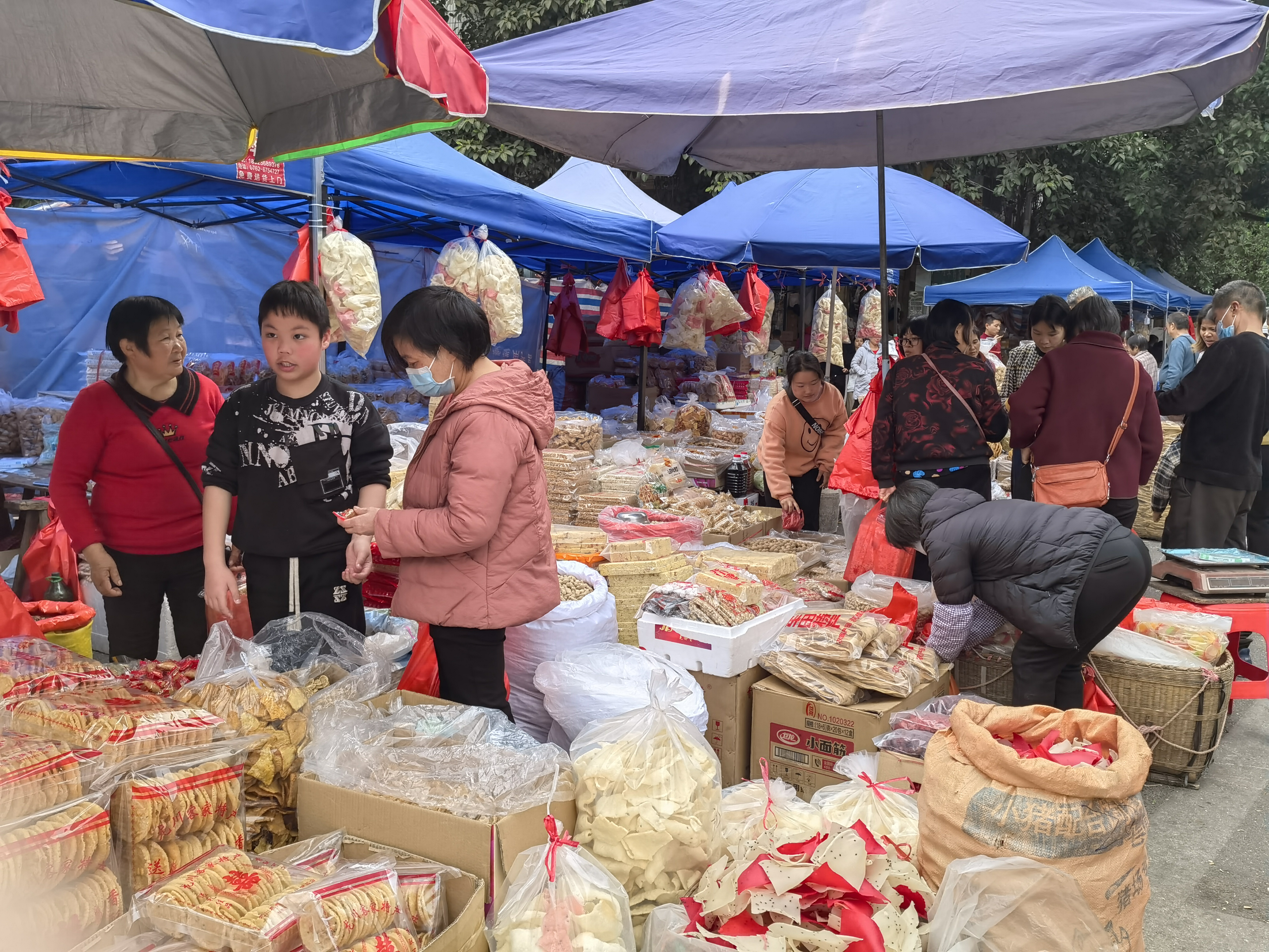 随着蛇年春节临近,位于龙川县城华光市场路口处的春节干货临时摊位摆卖点成为城市中最具烟火气与喜庆氛围的所在地,购买年货的市民熙熙攘攘,在供销两旺的烟火气中感受浓浓的年味儿。