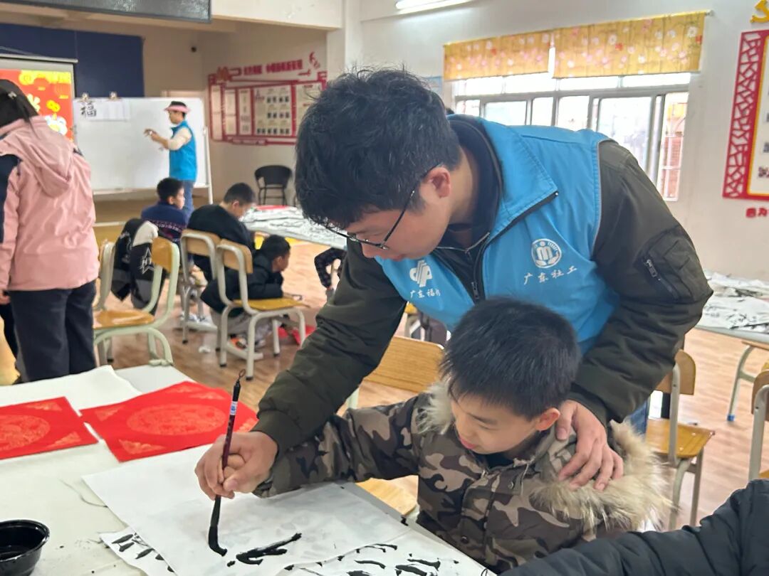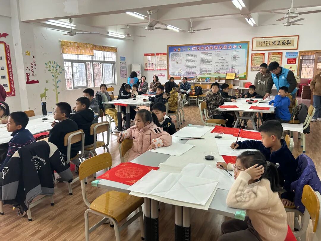 春节将至,为弘扬中华传统文化,让孩子们感受书法艺术和传统节日的魅力,1月26日上午,芦苞镇儿童之家携手镇“双百”社工站举办了一场别开生面的“福迎新春,‘童’续传承”书法活动。此次活动吸引了众多热爱毛笔书法的孩子参与,现场充满了浓浓的节日氛围。