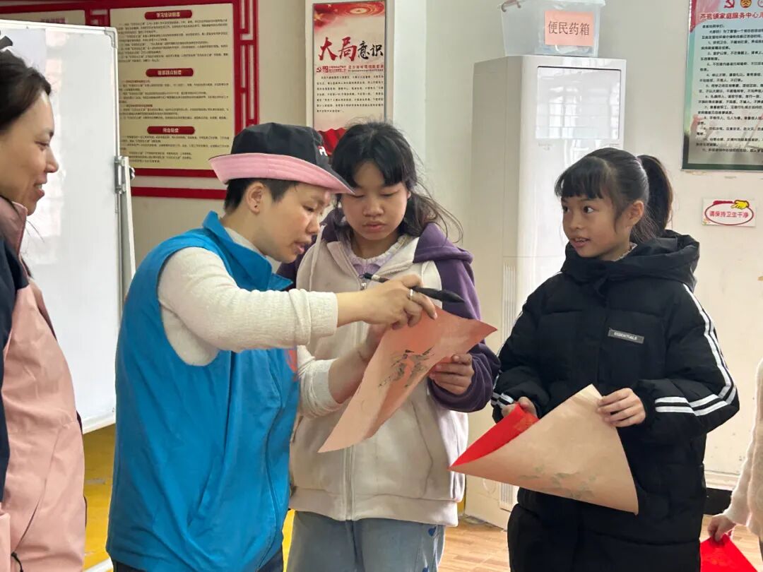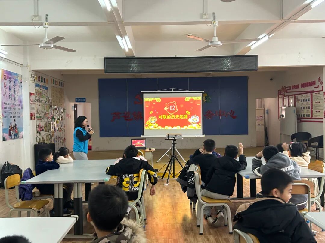 活动伊始,社工通过生动有趣的讲解,带领孩子们穿越历史长河,探寻传统对联的起源与发展。社工绘声绘色地讲述着古人如何用笔墨书写对美好生活的向往,以及对联在岁月变迁中承载的文化内涵。同时,社工还分享了生肖“蛇” 的趣味故事和相关古诗,孩子们听得津津有味,对传统文化的兴趣愈发浓厚。
