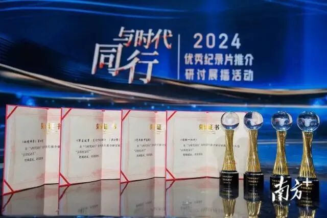 11月9日,“与时代同行”优秀纪录片推介研讨展播活动在广州举办并揭晓“百佳纪录片”,广东广播电视台出品的《湾区故事·蓝天下的期盼》(共两季)、《青年强 中国强》、《秘境神草》第四季、《同饮一江水》四部作品入选。