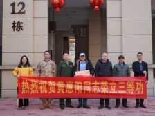 “欢迎大家的到来,感谢你们为我送来惠阳的立功喜报,这是新年里最好的礼物!”黄父早早地就已在家门口等候,看到送喜报小分队的到来,激动的心情溢于言表。“恭喜你啊,培养了一个这么优秀的孩子,在军营荣立新功,给家乡人民争光争气啦!”紧接着,杨林将装裱好的立功喜报送到黄父手中,并与其亲切地拉起家常,对黄父培养出优秀的孩子表示赞扬,详细询问家庭生产生活状况以及家人的身体健康状况,是否存在生产生活上的困难,并希望军属继续支持孩子在部队发展,争取更大荣誉。据悉,黄惠阳于2009年12月入伍,服役于武警某部,入伍以来,黄惠阳吃苦耐劳,精武强能,善作善成,出色的工作表现得到了战友和上级的充分认可。