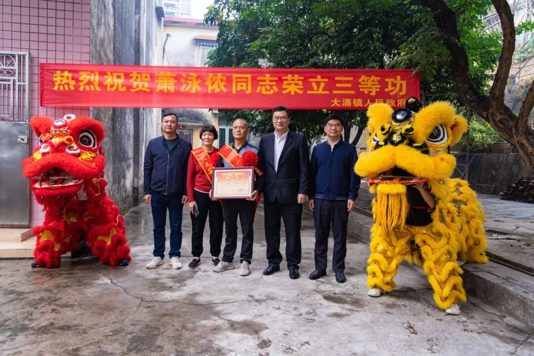 2025年新年伊始,中山市大涌镇党委书记、武装部政治教导员李健华率慰问组为荣立“三等功”的现役军人家庭颁发“三等功”喜报,将喜报送到军属手上、红花戴在军属胸前、慰问传递军属心中,激励现役军人在部队安心服役、建功立业,进一步激发全镇广大适龄青年投身国防事业的热情。