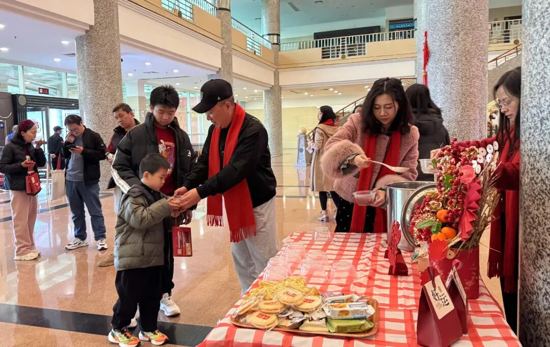 与此同时,“甜甜蜜蜜过大年”活动也随之展开。图书馆大堂的一角开设了长安特色美食——红薯糖水品尝活动,让到馆读者品尝这一特色本地美食,感受长安的饮食文化,用味觉开展一场特色文化之旅。